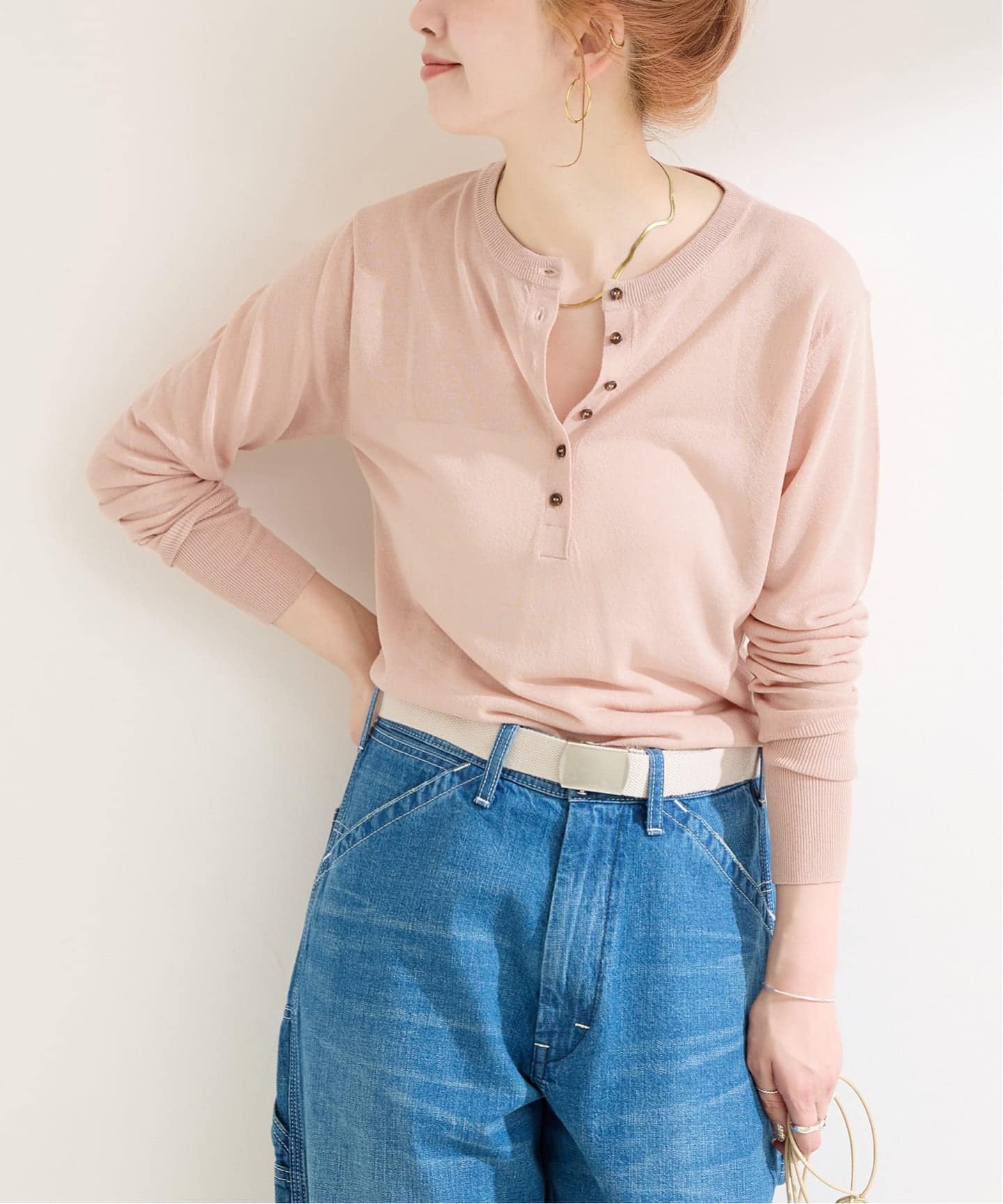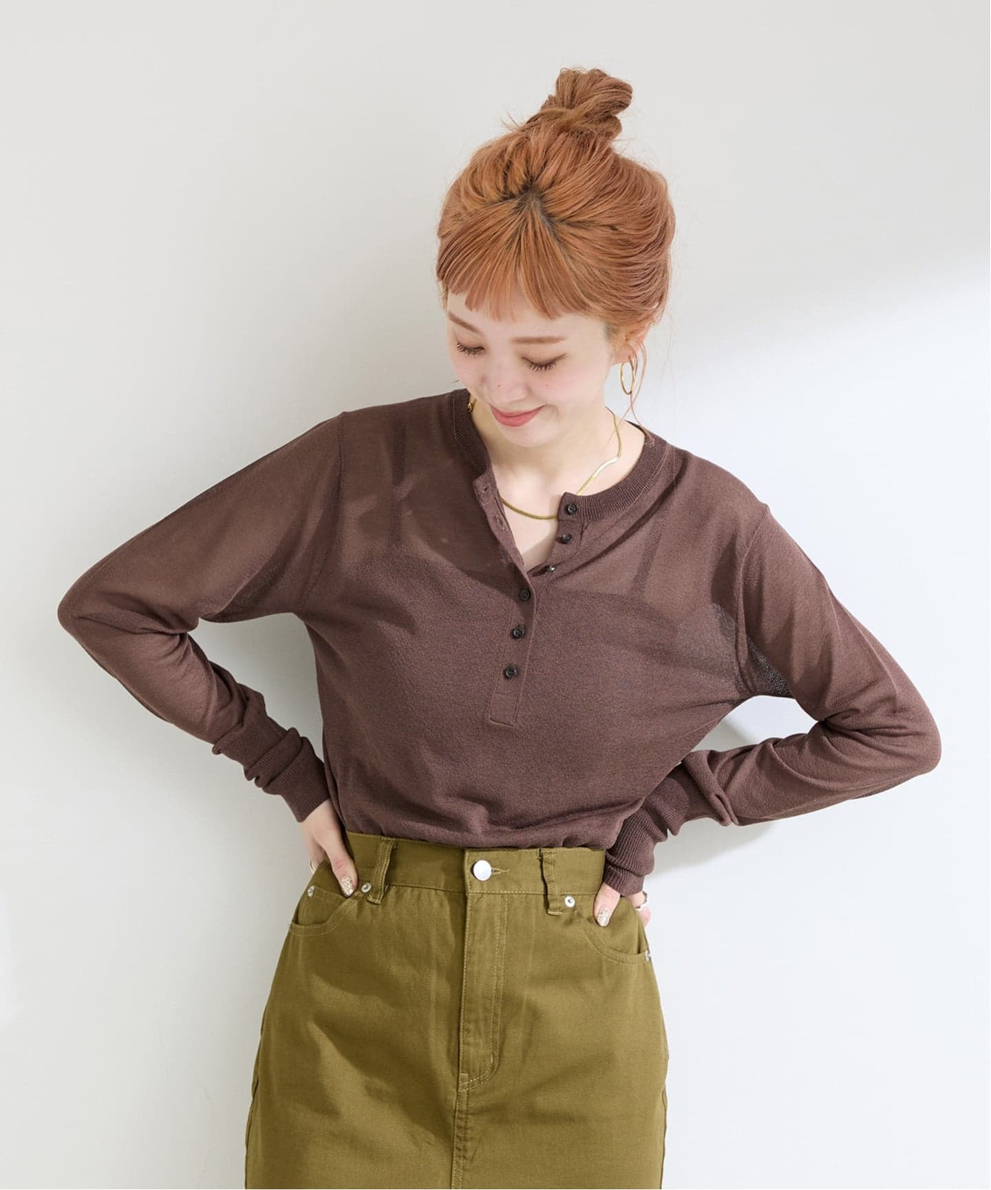 程よいサイズ感で肌離れがよくドライタッチなのが特徴で、リラックス感のあるヘンリーネックデザインが普段使いとしても気軽に着れるアイテムです。強撚のレーヨンナイロン糸で透け感が強すぎず、あえてウォーム感のある色味でお作りし大人っぽい雰囲気にしています。