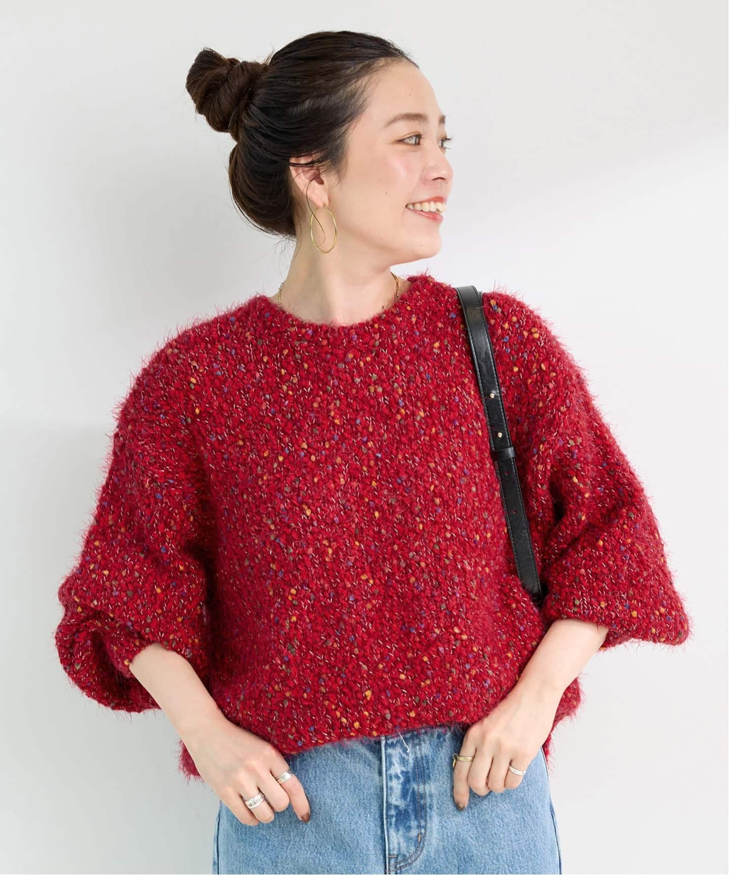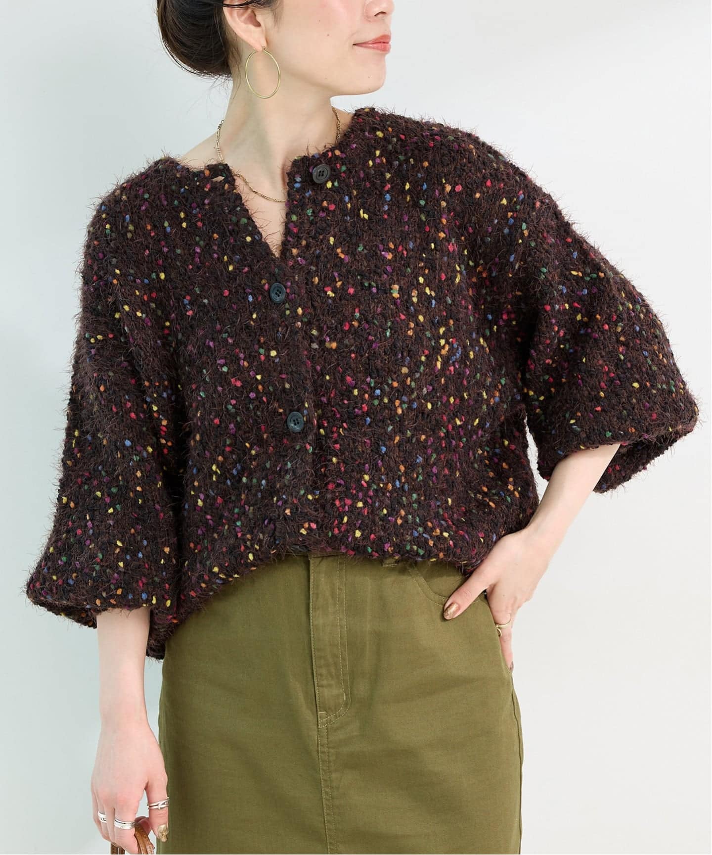 タイプの異なる4種類の糸を引き揃えてミックス調にした前後2wayのニット。ポコポコとした見え感にフェザーのフワフワ感とゆるっとした雰囲気が可愛いく、カラフルでキャッチーな一枚着映えのタイプです。秋口からTシャツに羽織としてお使いいただける素材でチクチク感が気にならず、表面感が新しい他にはないB.C STOCKならではのアイテムになっています。