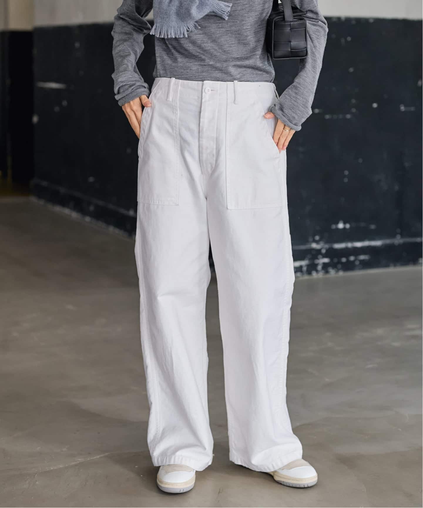 腰で引っ掛けてずるっと穿くスタイルもよし、ウエストに付いたタブを留めてジャストで履くと、また違った雰囲気を楽しめます。