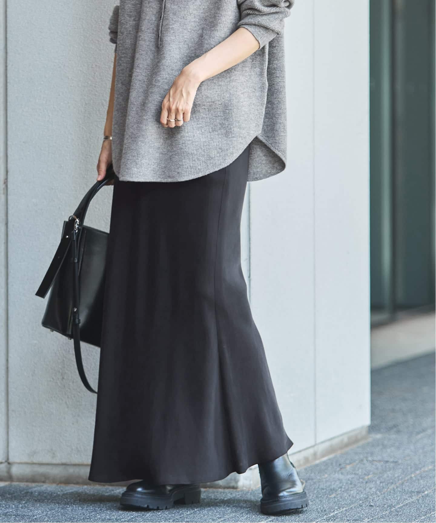 バイアス裁ちにすることで生地に落ち感が出て、自然なマーメイドシルエットになるのがポイント。
