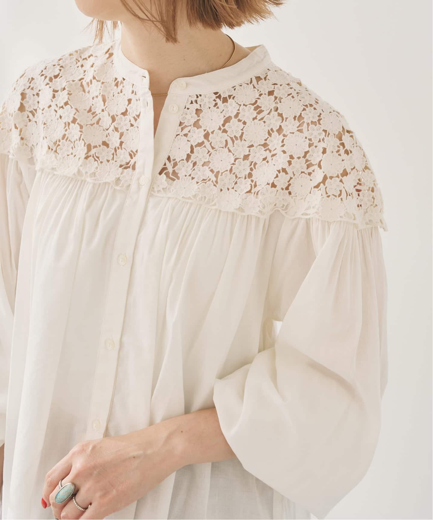 重たくなりがちな冬のスタイリングに、レースの軽さがよく映える季節。