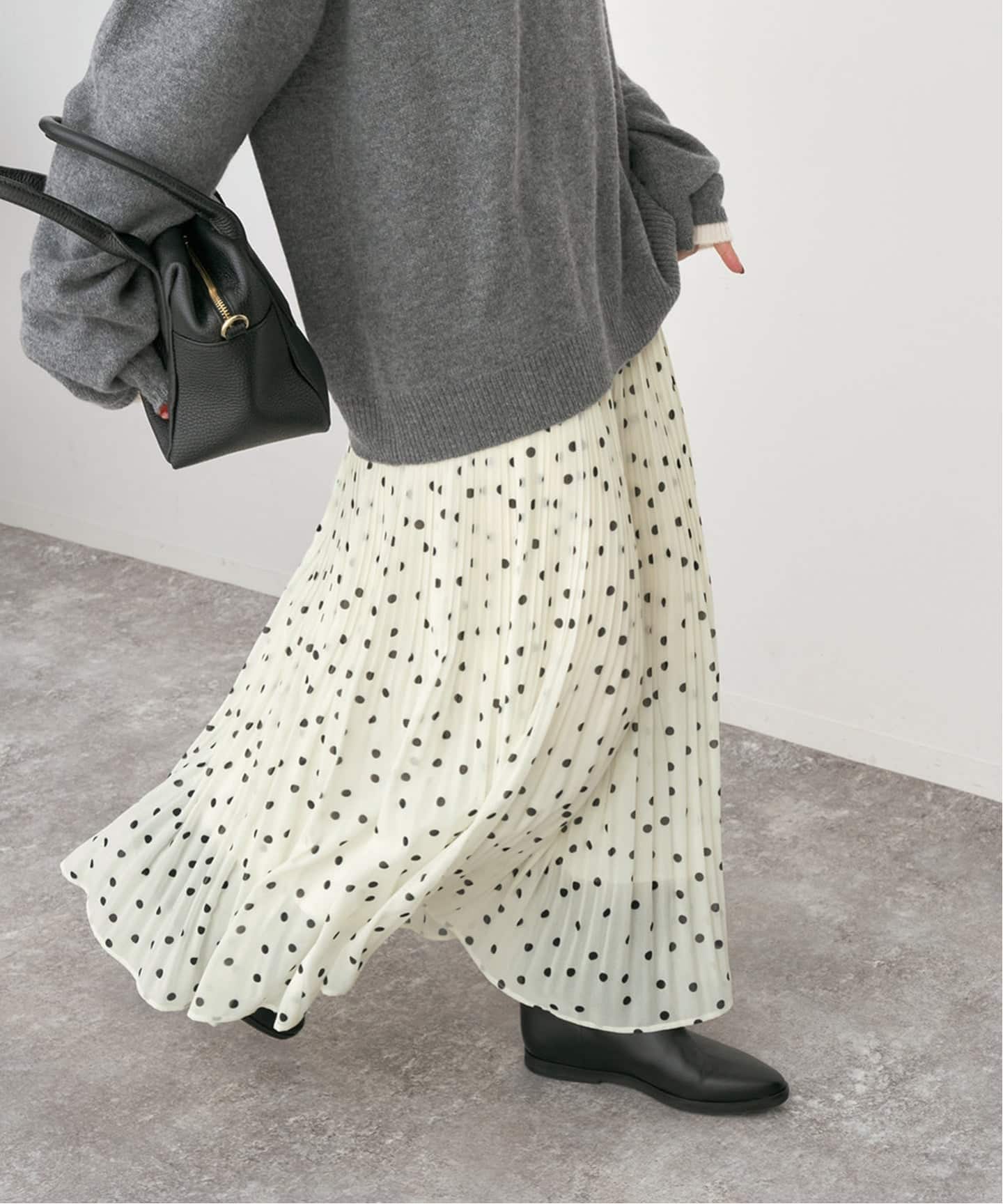 揺れ感のきれいなプリーツにドットをのせた優雅な一枚。