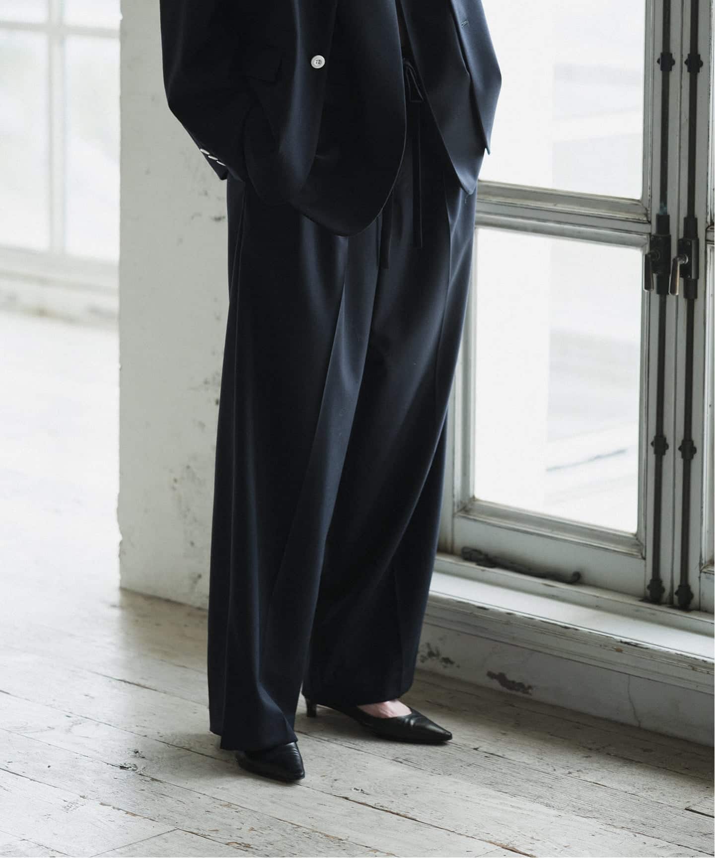 ・タックを入れたデザインが立体感を生み、ワイドシルエットながらスッキリ見える仕上がり