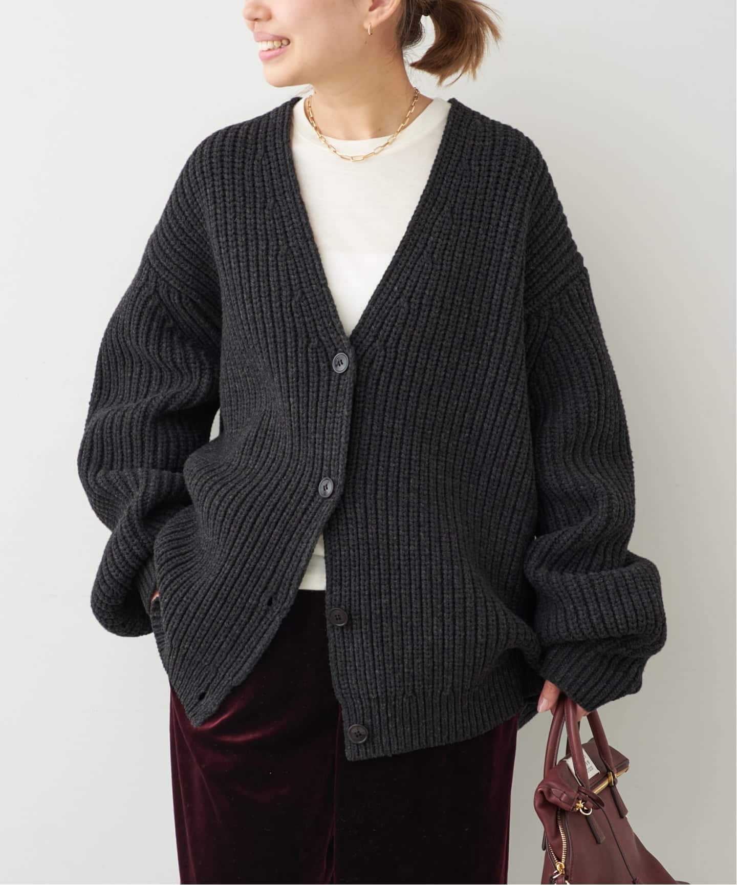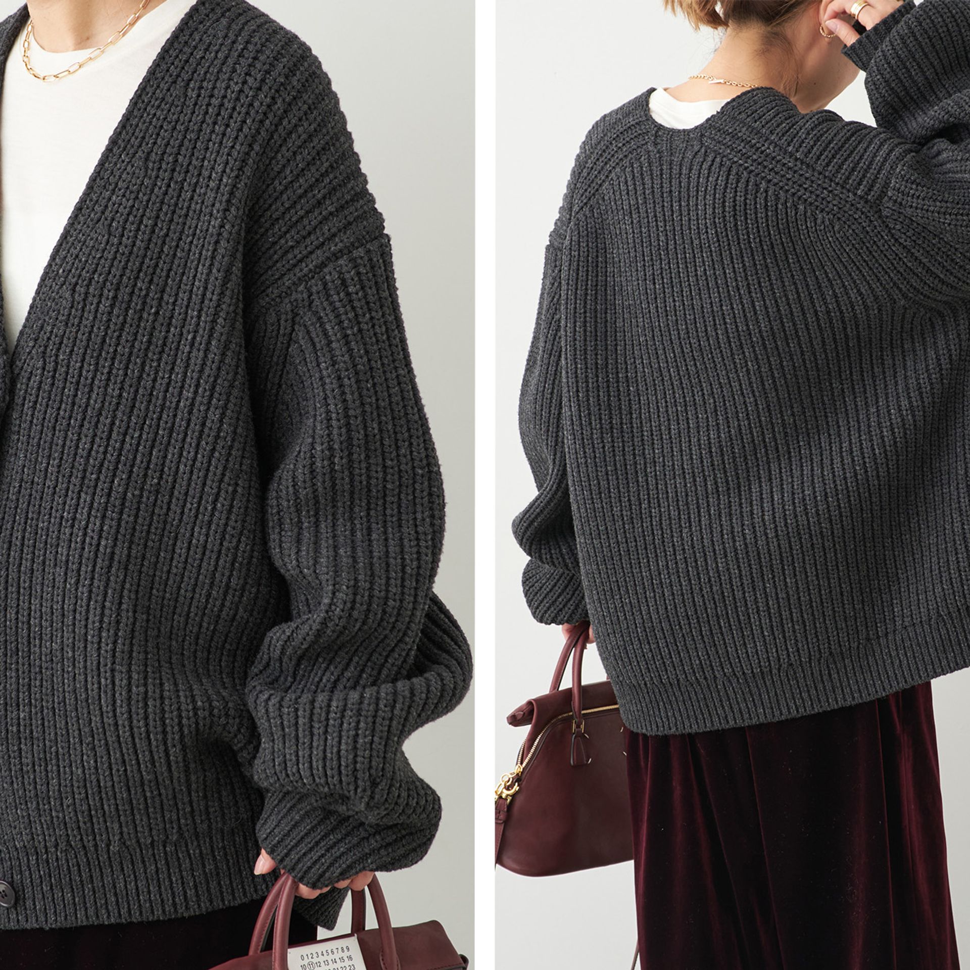 ハンドニットの風合いと、太さのある編地がシンプルなデザインに表情を生む。