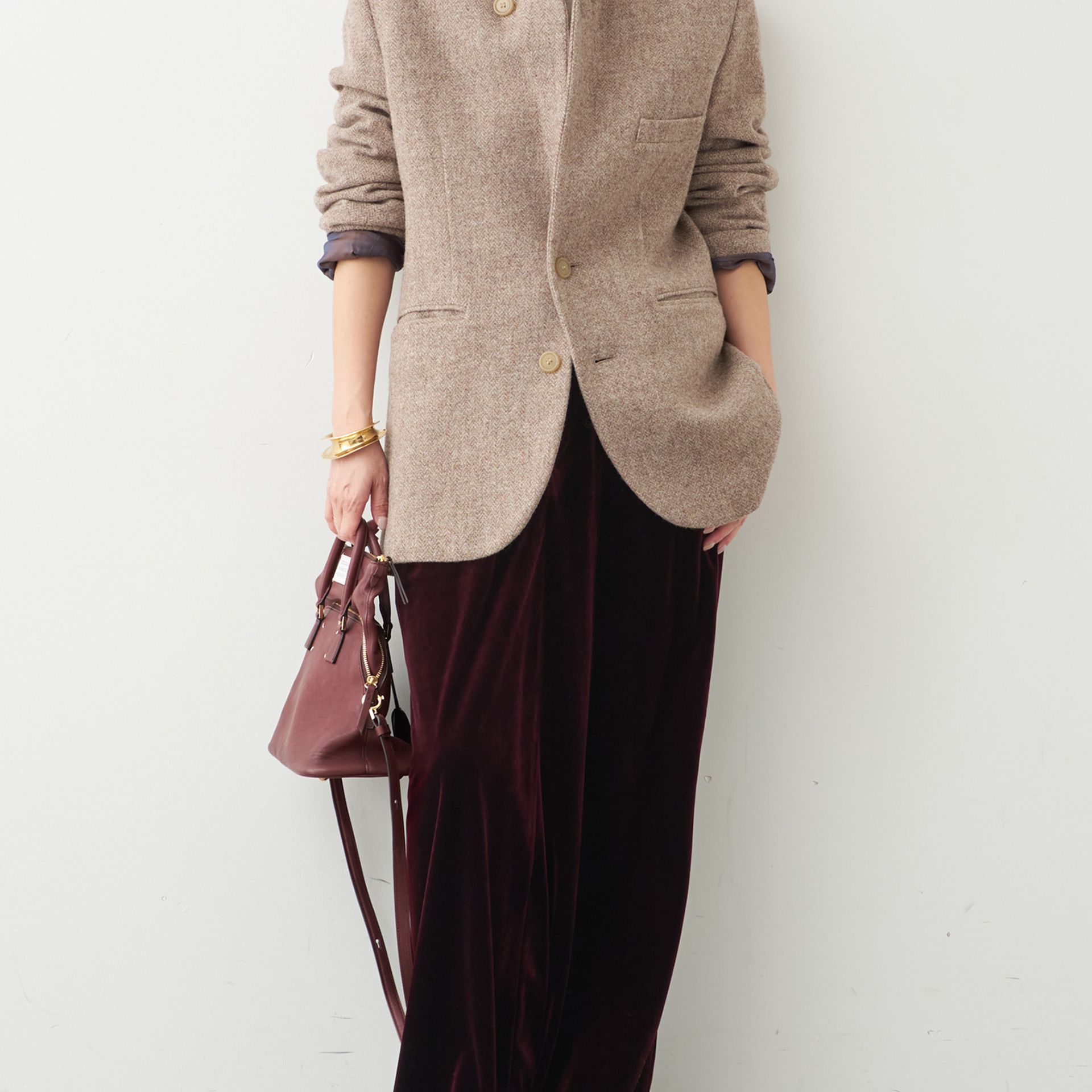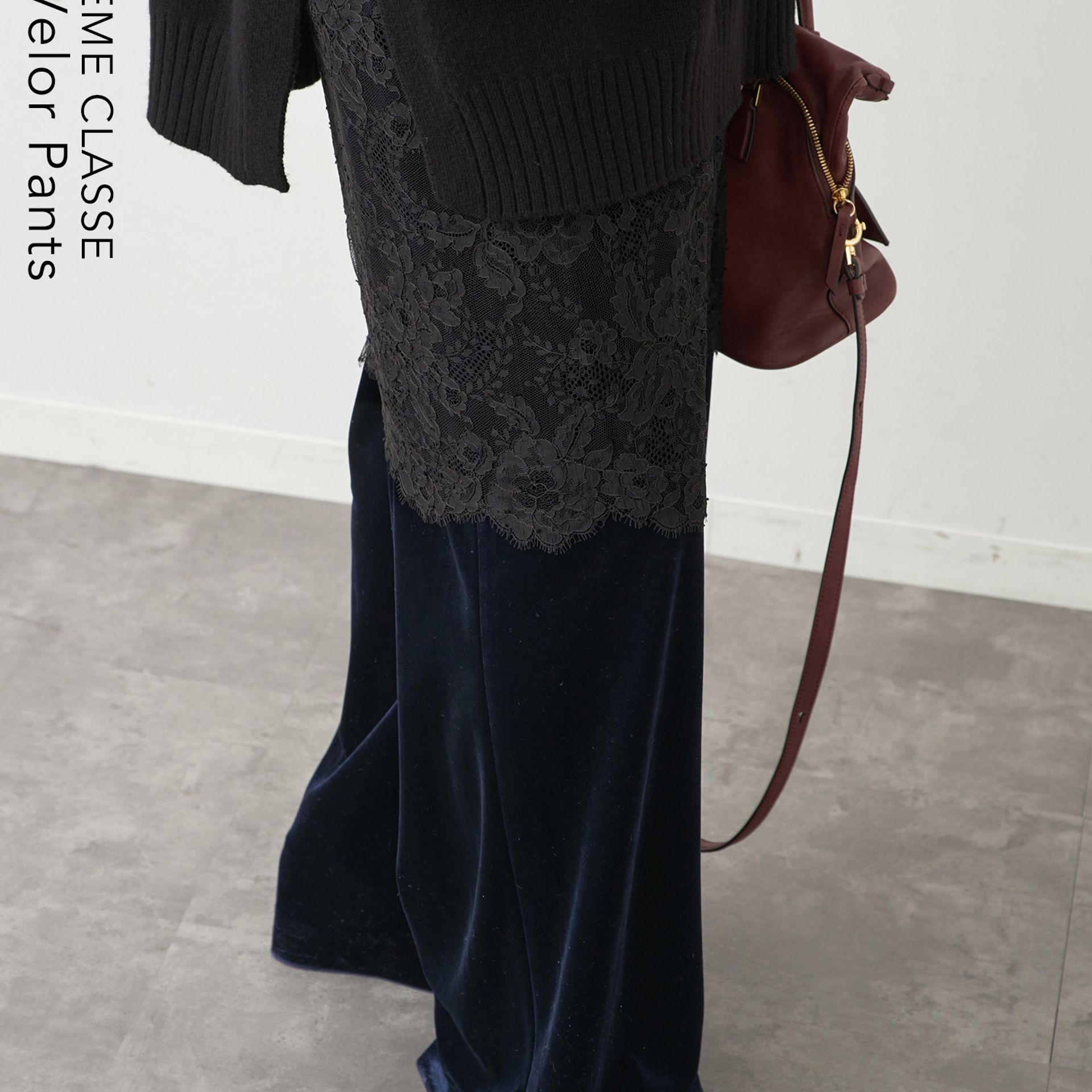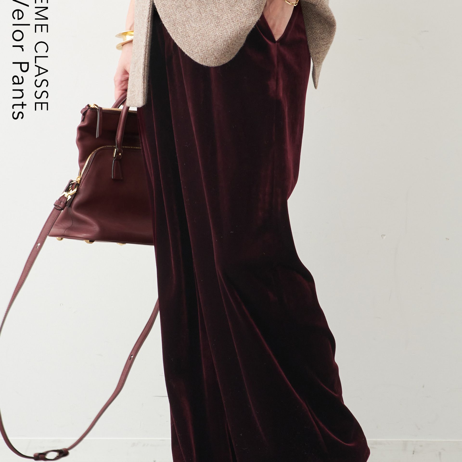 今シーズン気になるベロアパンツを合わせれば、スタイリングに遊びと上品さを纏える。
