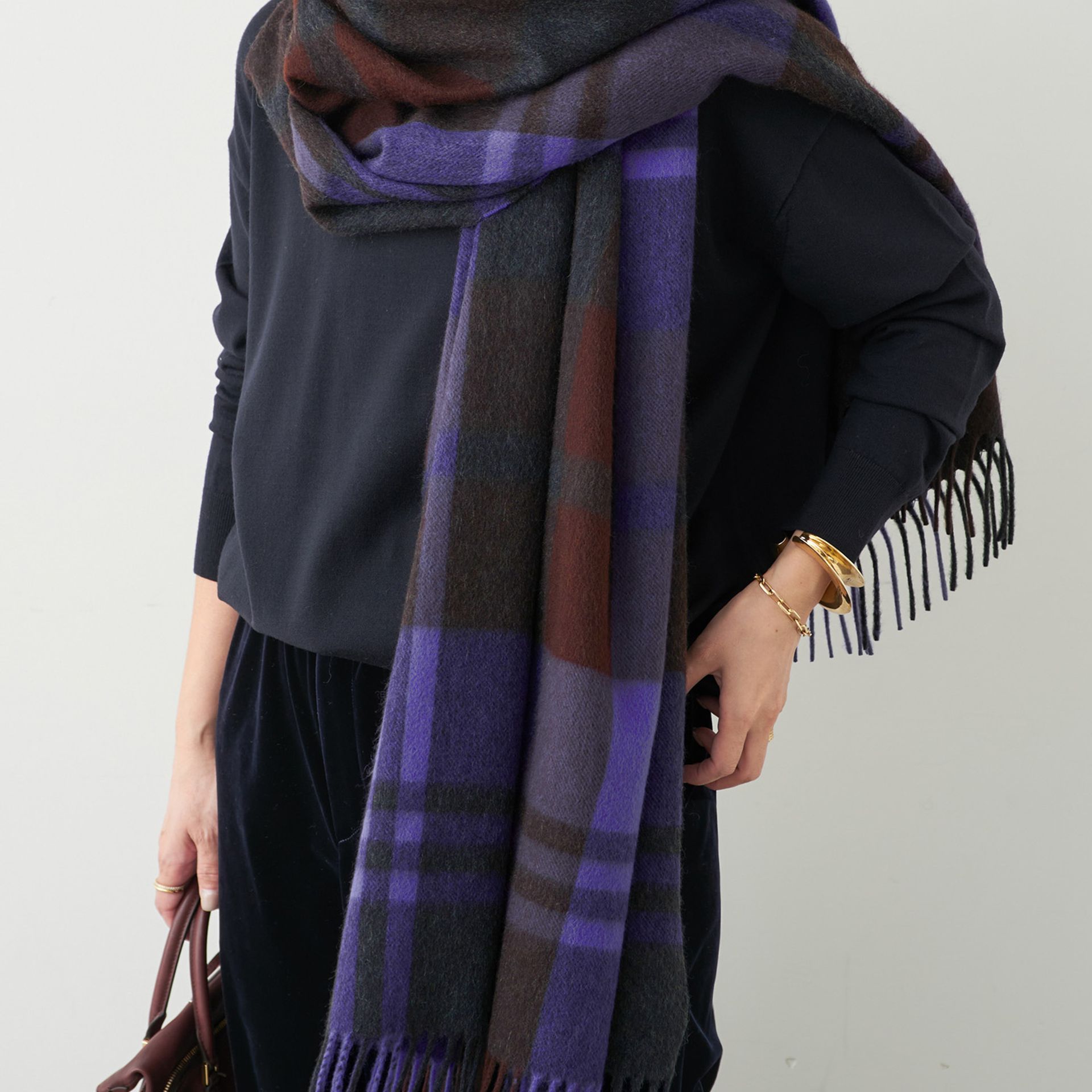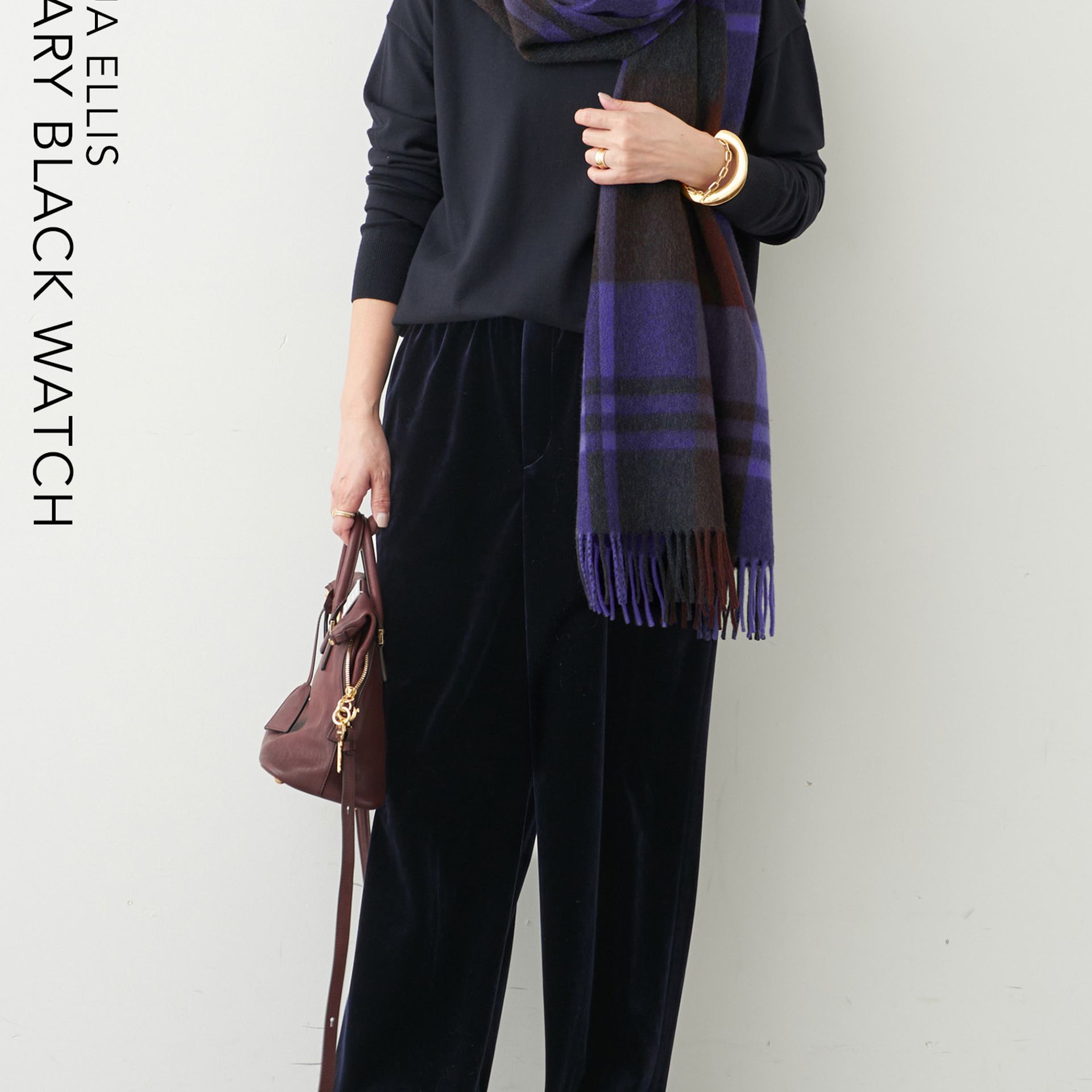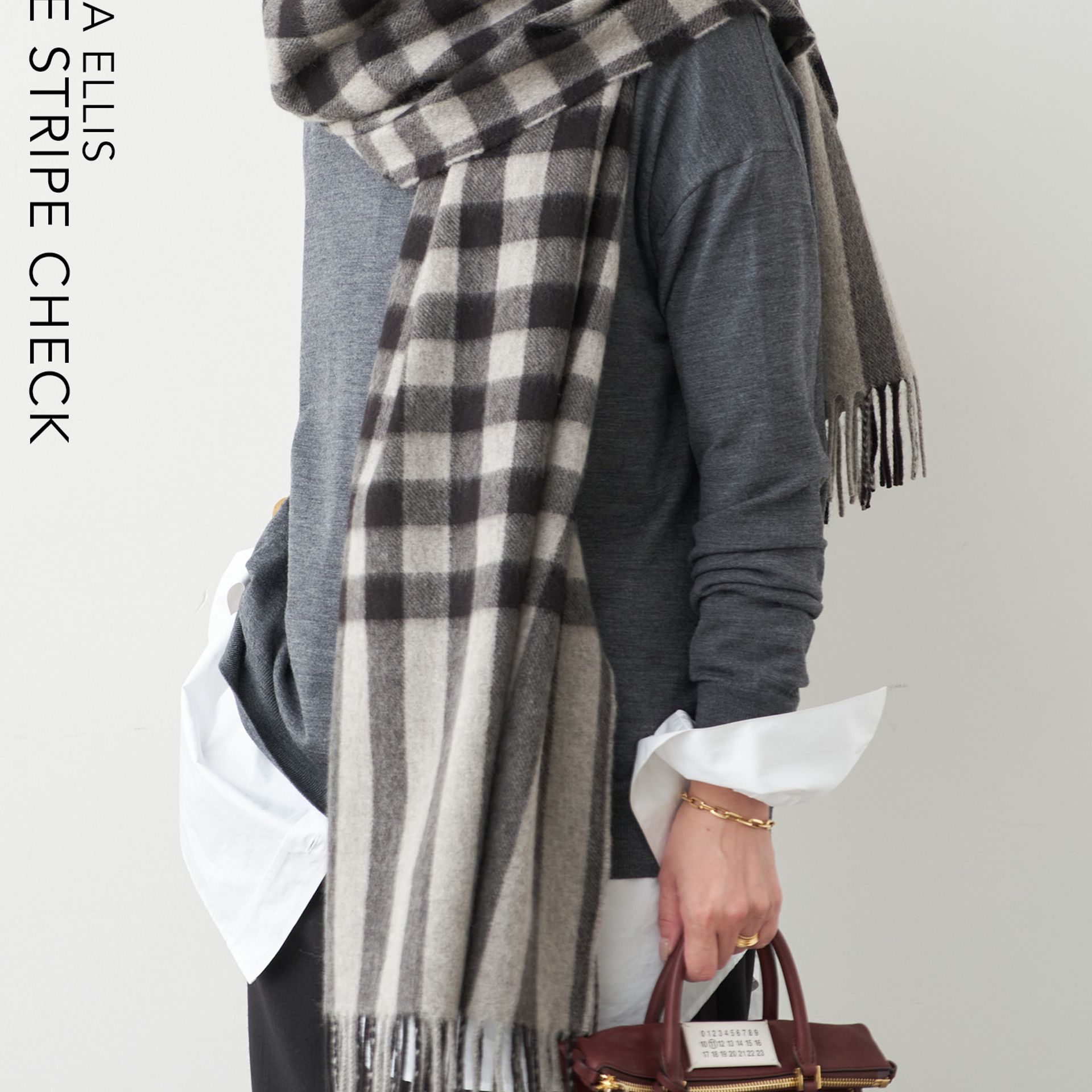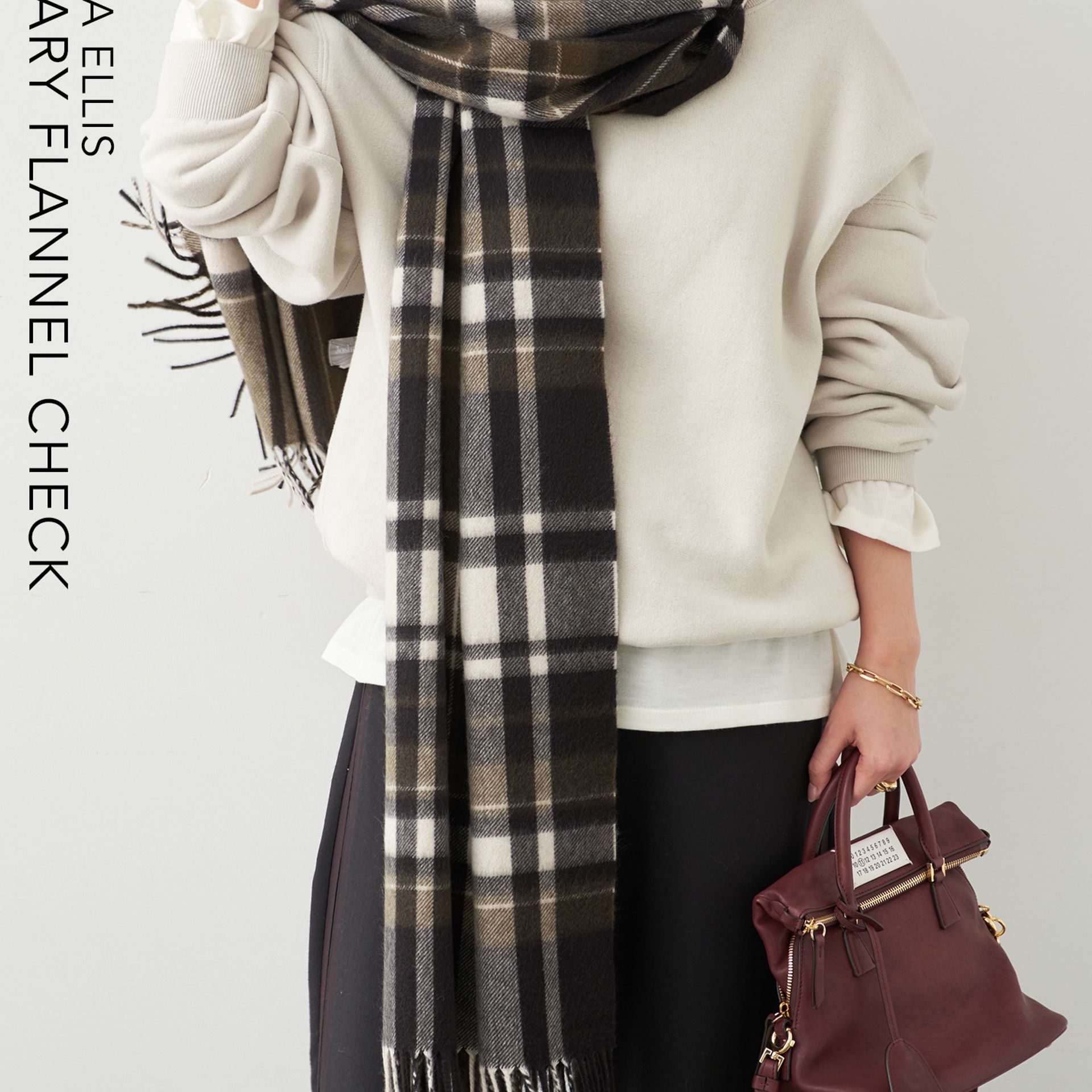 モノトーンスタイルに映えるストールは、モダンにチェックを纏いたい。