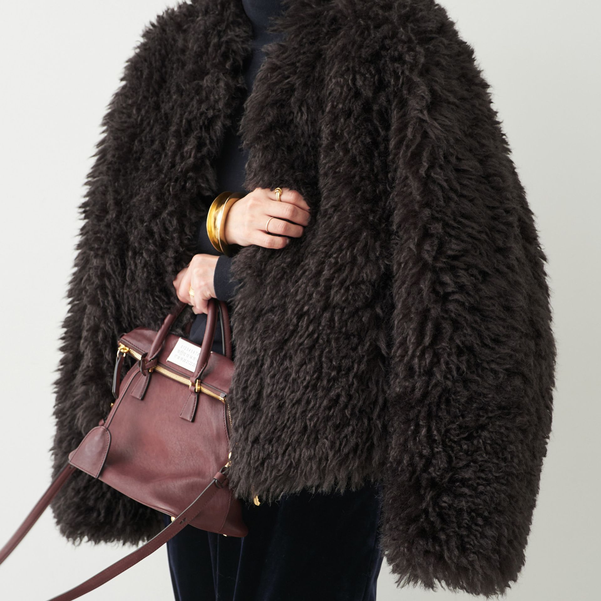 表情感のあるカーリーなフェイクファーだからこそ真面目にならず、カジュアルに取り入れられデイリーに落とし込める。