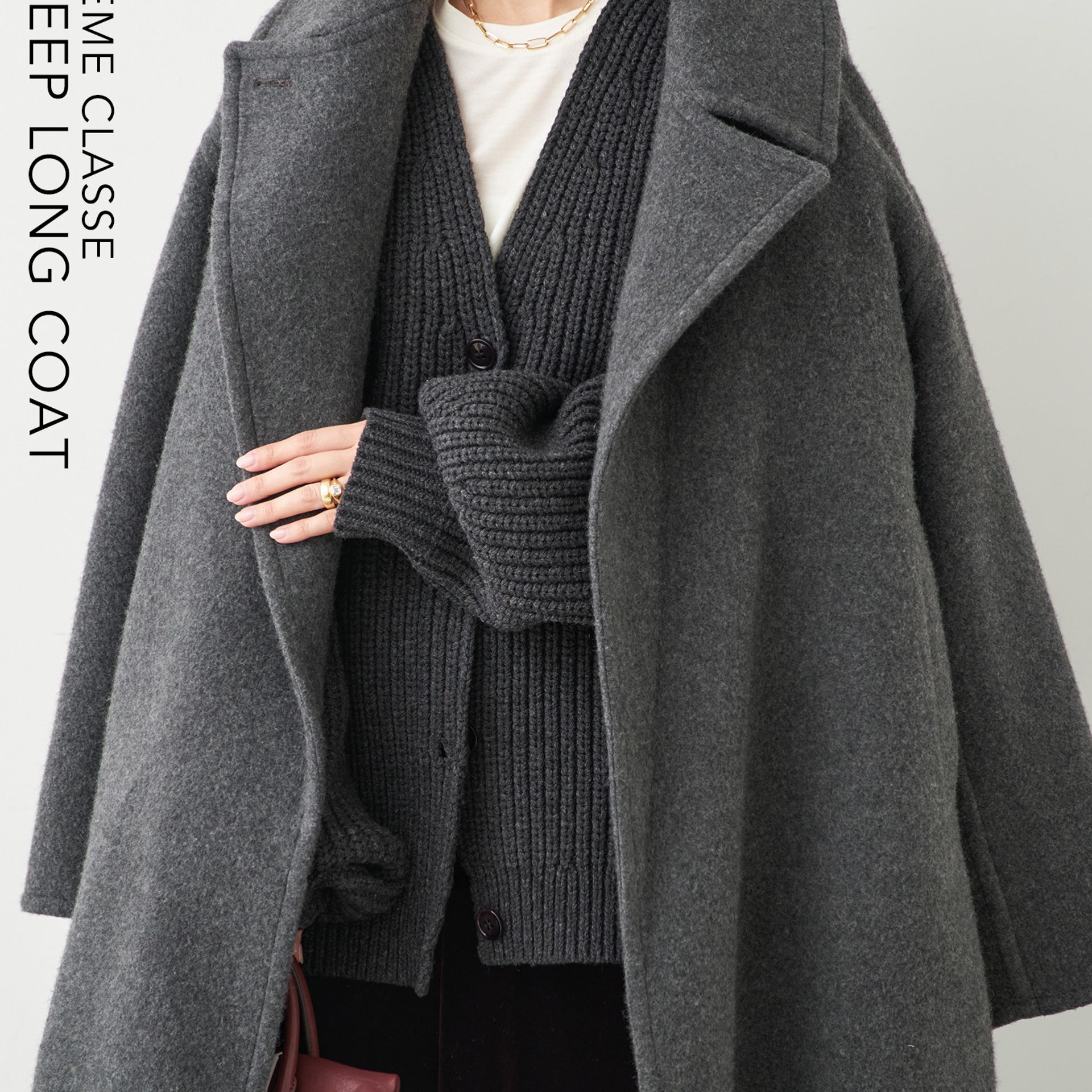 6397のカーディガンに色がマッチするのが、前回即完売となったCASHEEP LONG COATの新色グレー。