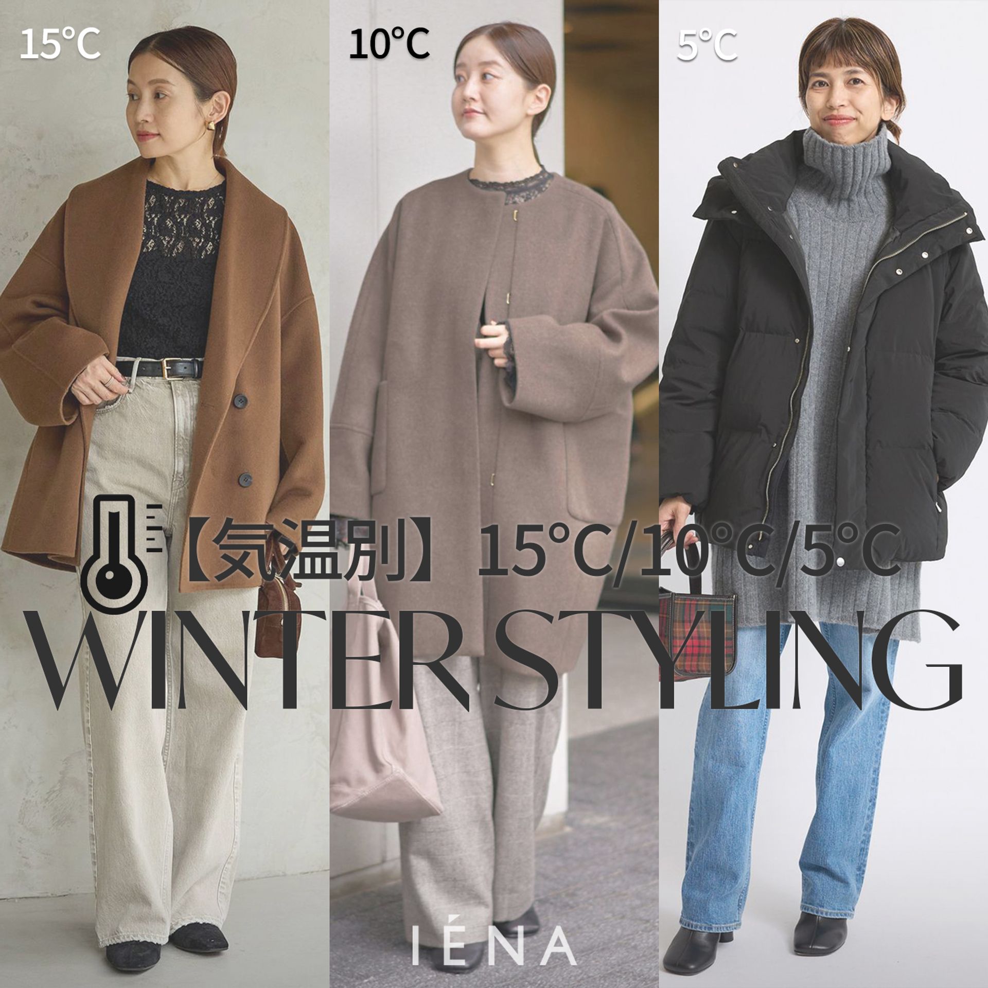 【気温別】15℃・10℃・5℃|IENAの冬アウターでつくる最旬コーデ