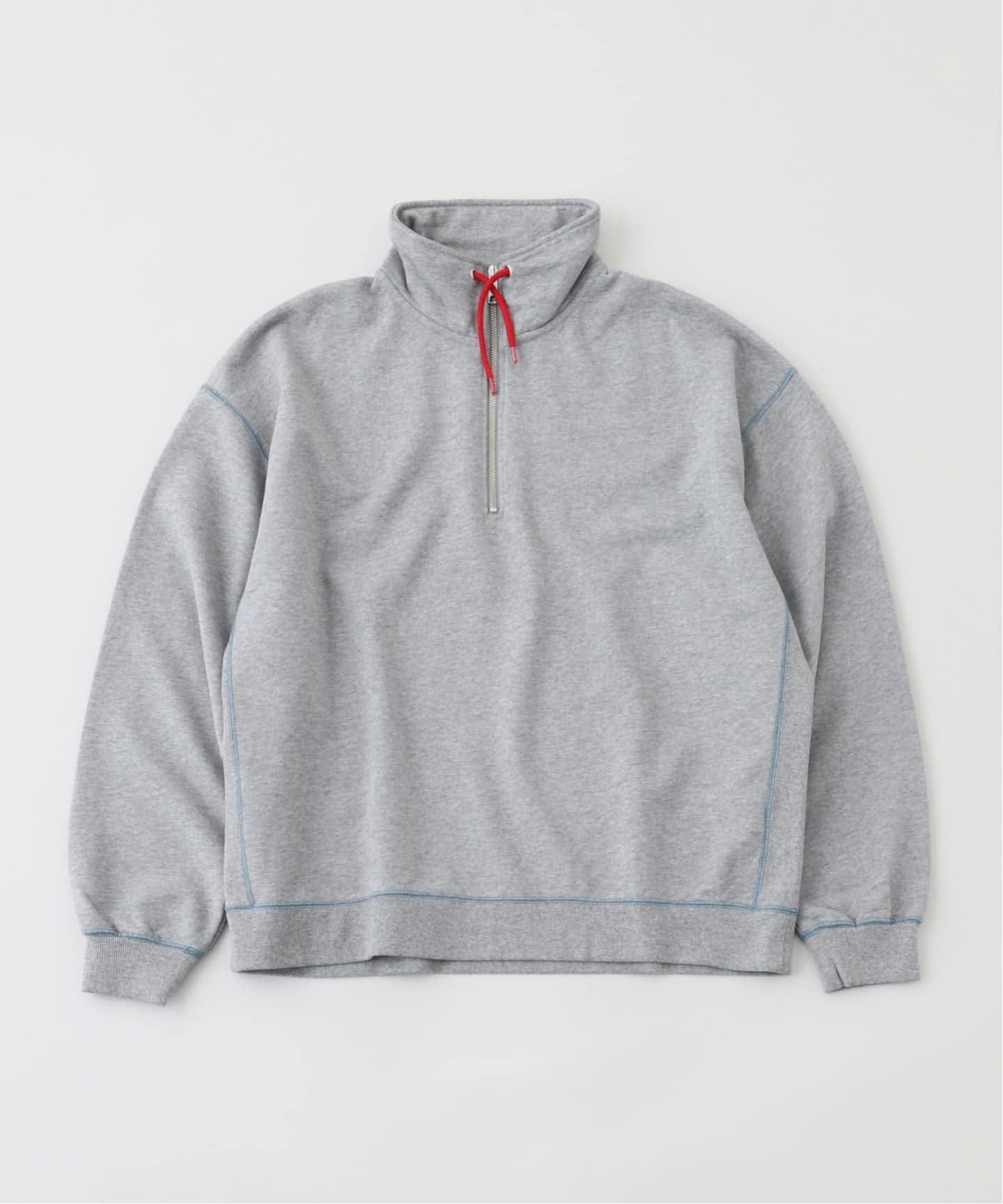 レッドのドローコードがアクセントのハーフジップスウェット。