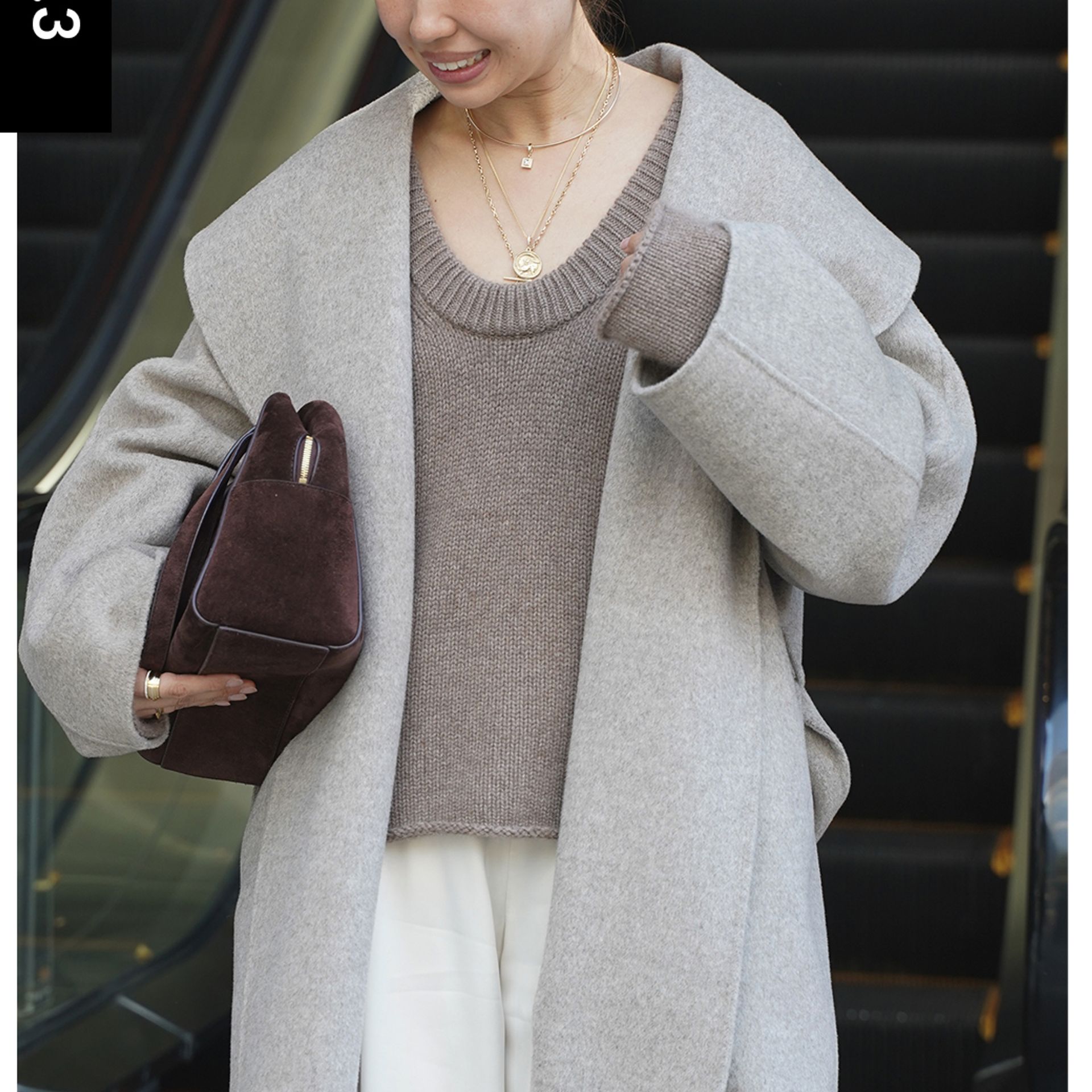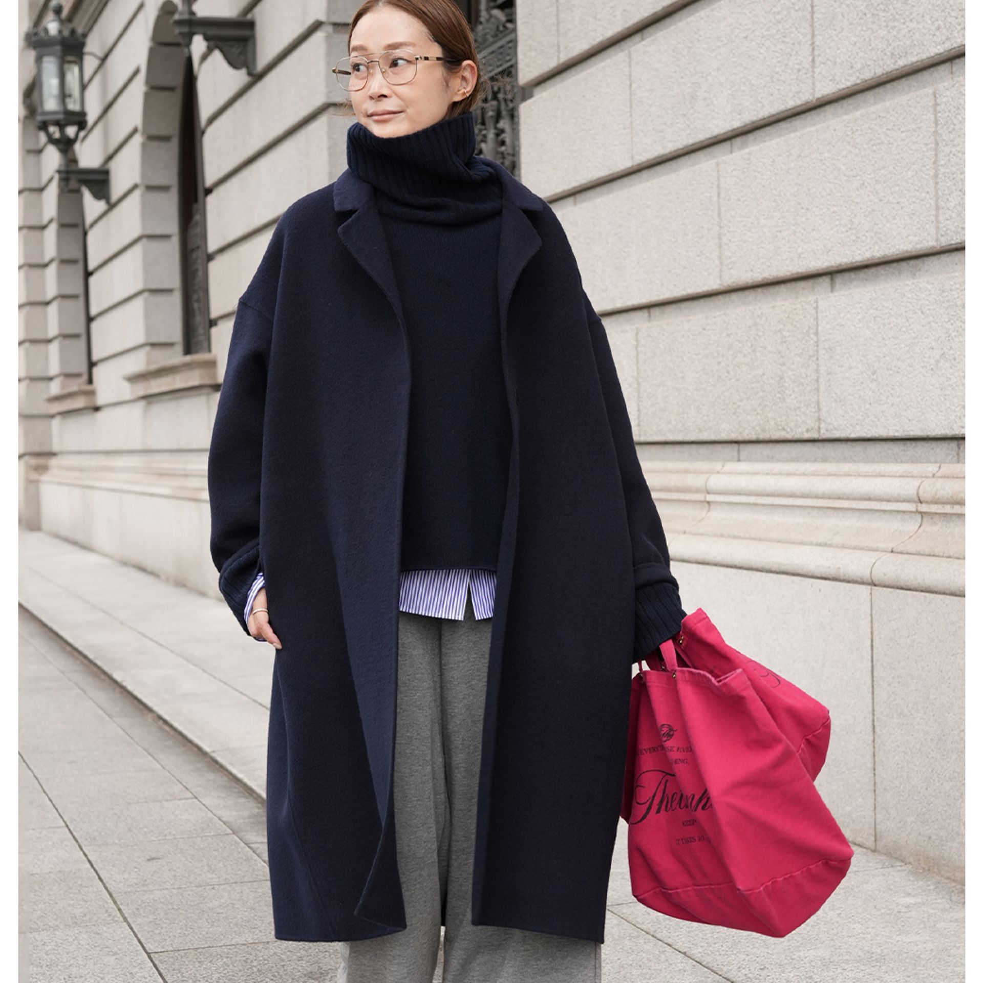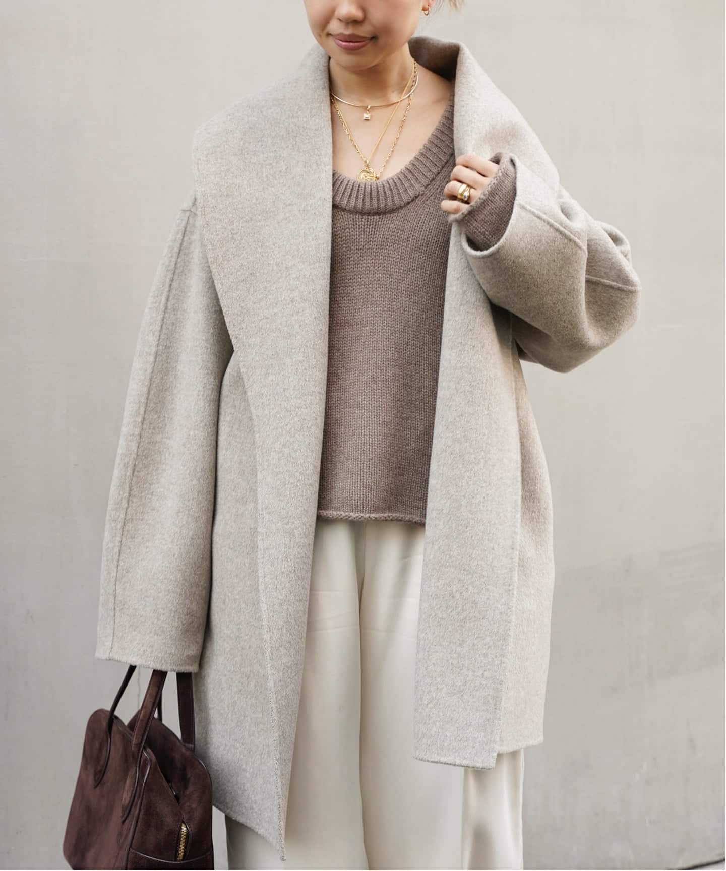 たっぷりのラインがムードを放つウールアンゴラノーカラーコート。