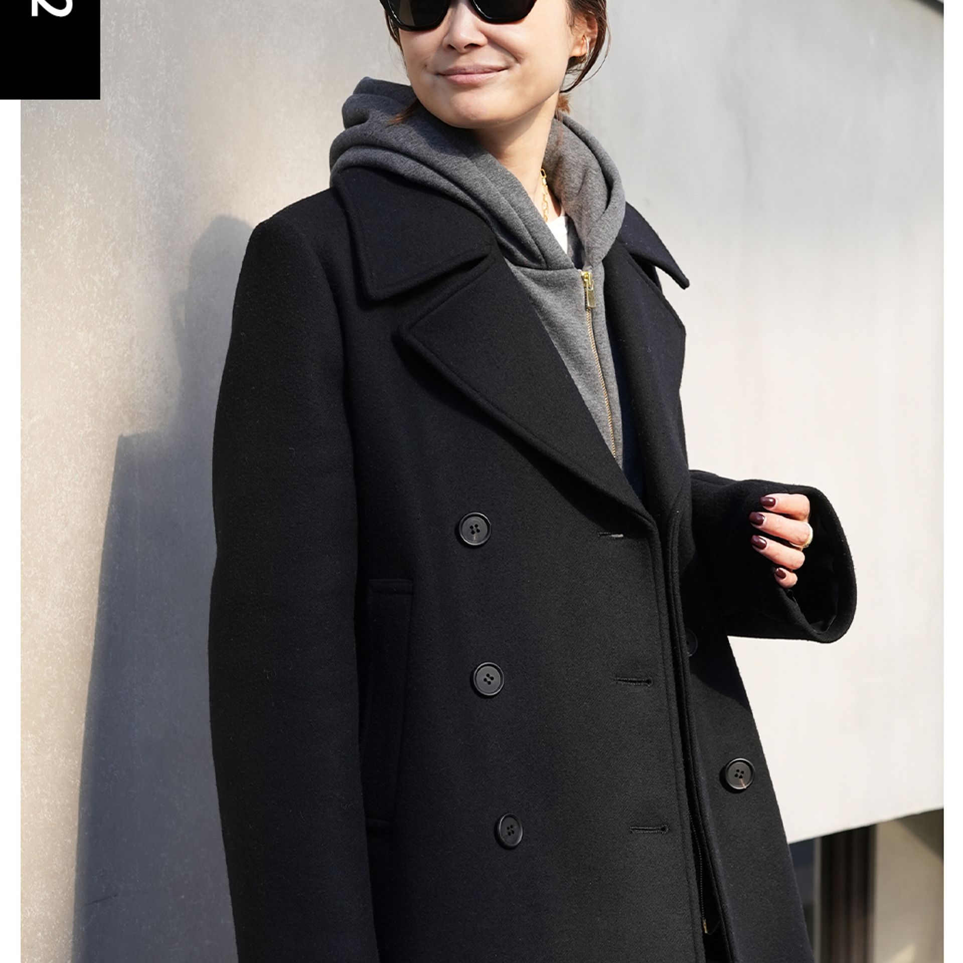 深くきめ細かい艶を感じるブラックに、立体感をKEEPする上質なメルトンが贅沢にみせる大人のピーコート。