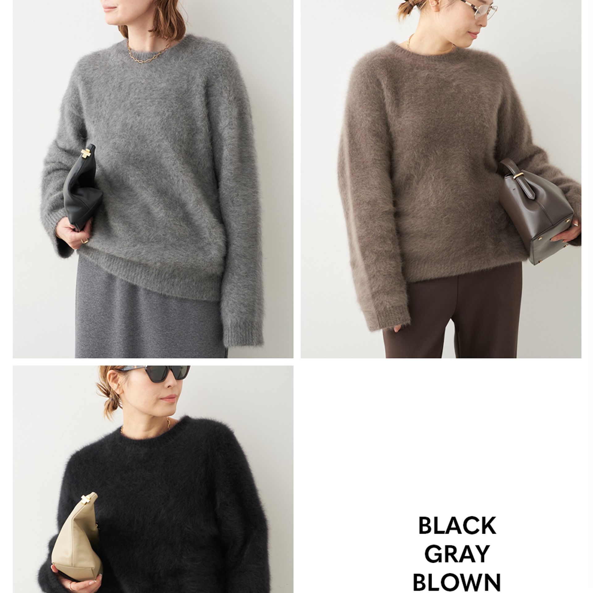 艶やかなアンゴラの質感が流れに合わせてドレープ感を生み出す。さりげなく広がるシルエットに袖の丸みがチャーミング。