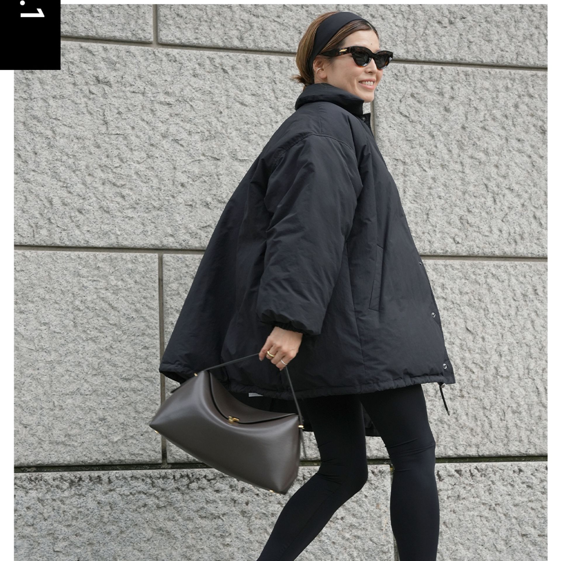 少し長めの丈はヒップを隠しレギンススタイルも様になり、コクーンのラインはマキシスカートとも好相性。