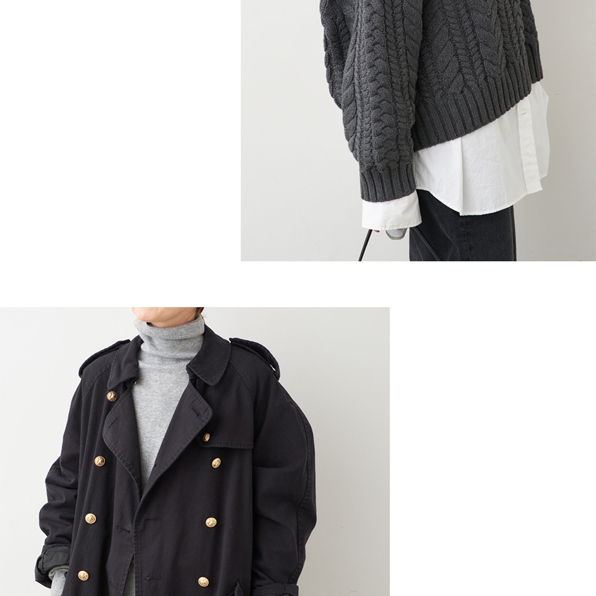 立体感あるケーブルニットに大人のトラッドスタイルをつくるトレンチコート。