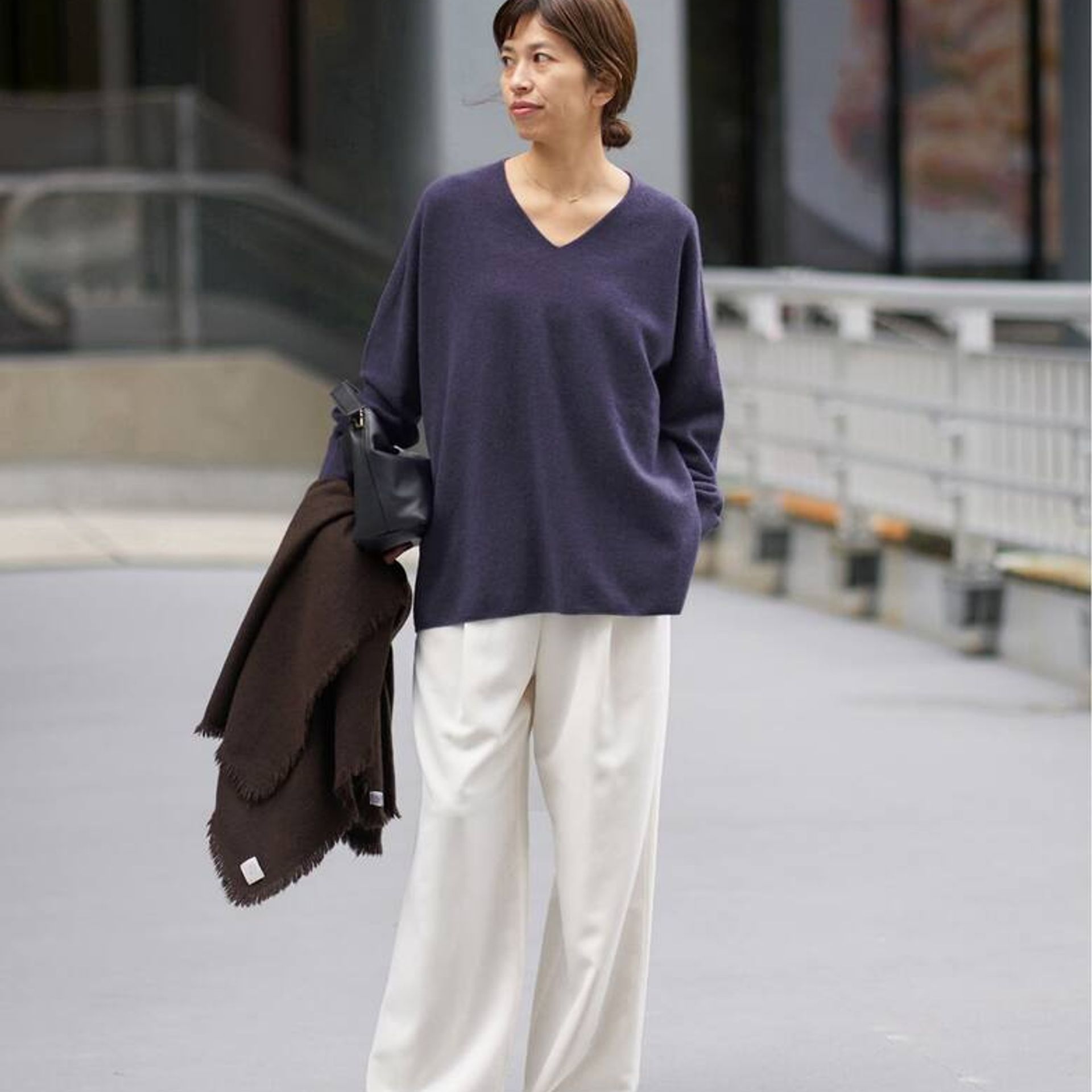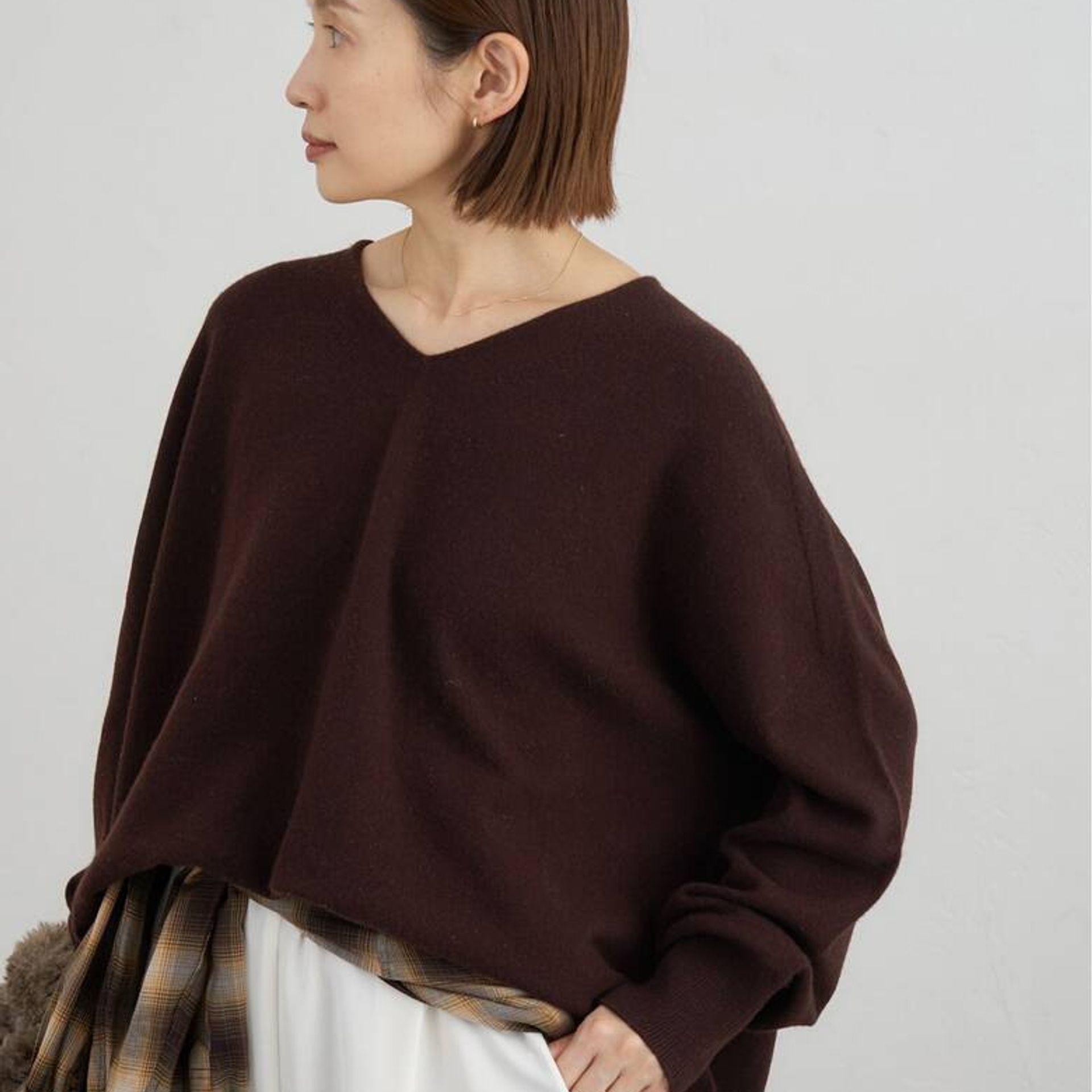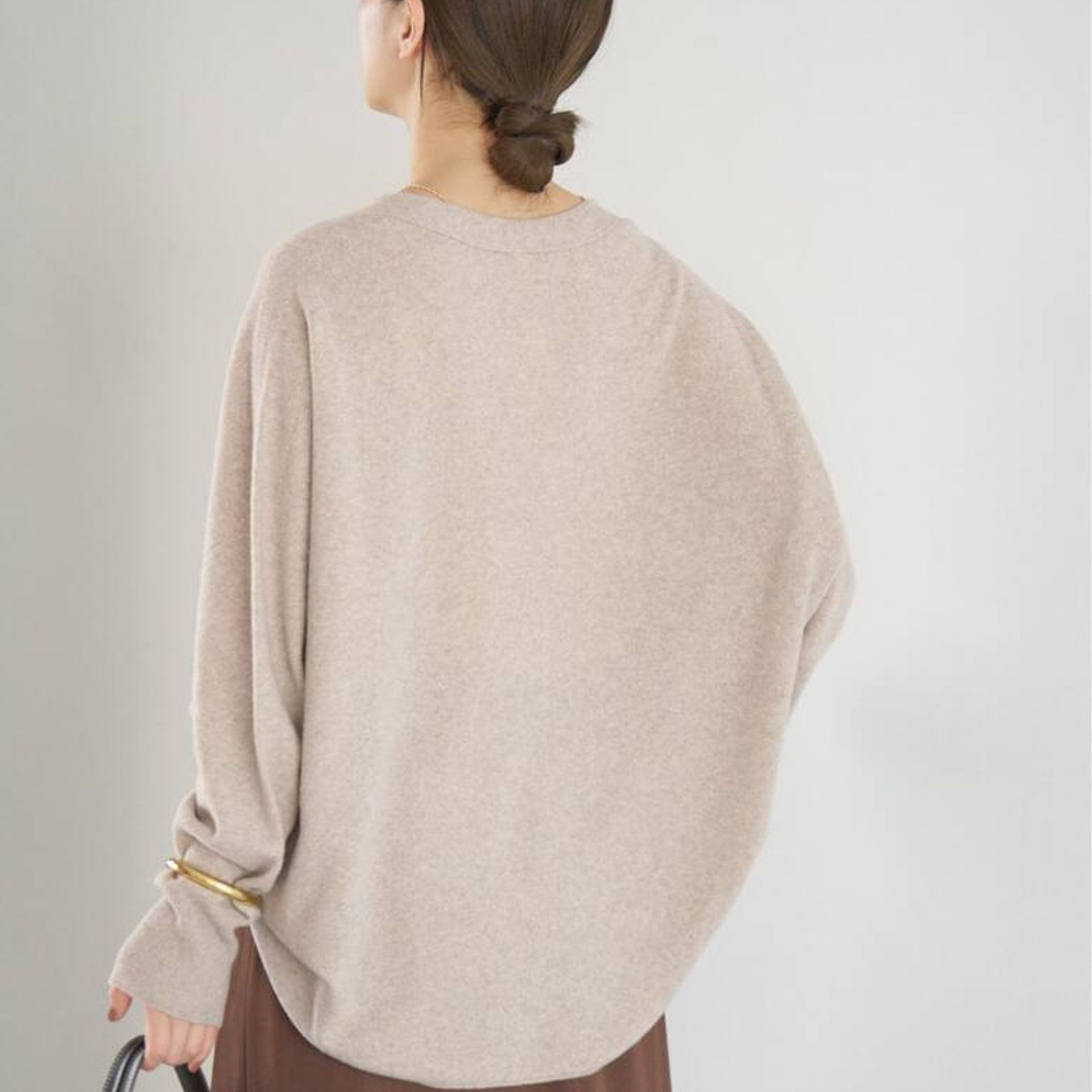 程よいVネックとゆったりシルエットで、レイヤードも一枚着も自在に楽しめるデザイン。