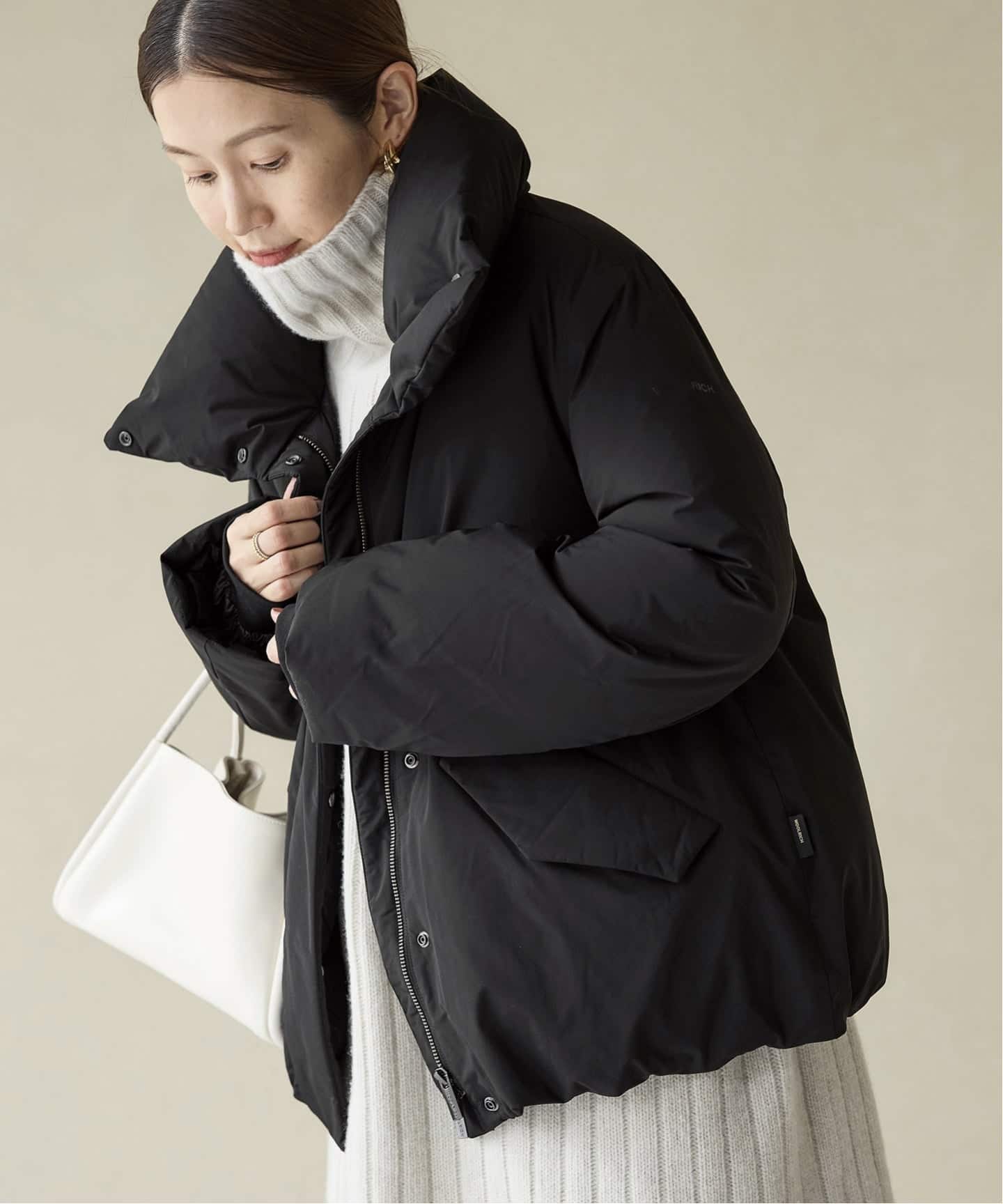 ハイネックデザインで首元までしっかり防寒。
