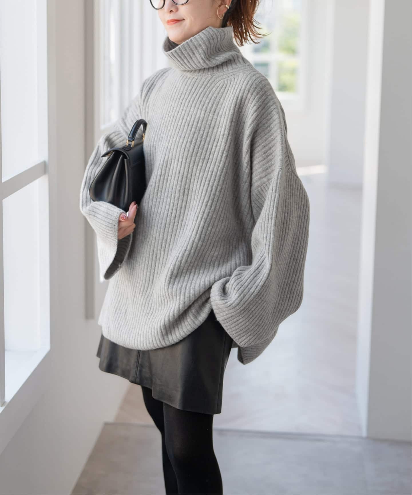 ラムウールチュニックタートルニット / ポロシャツチュニックニットワンピ