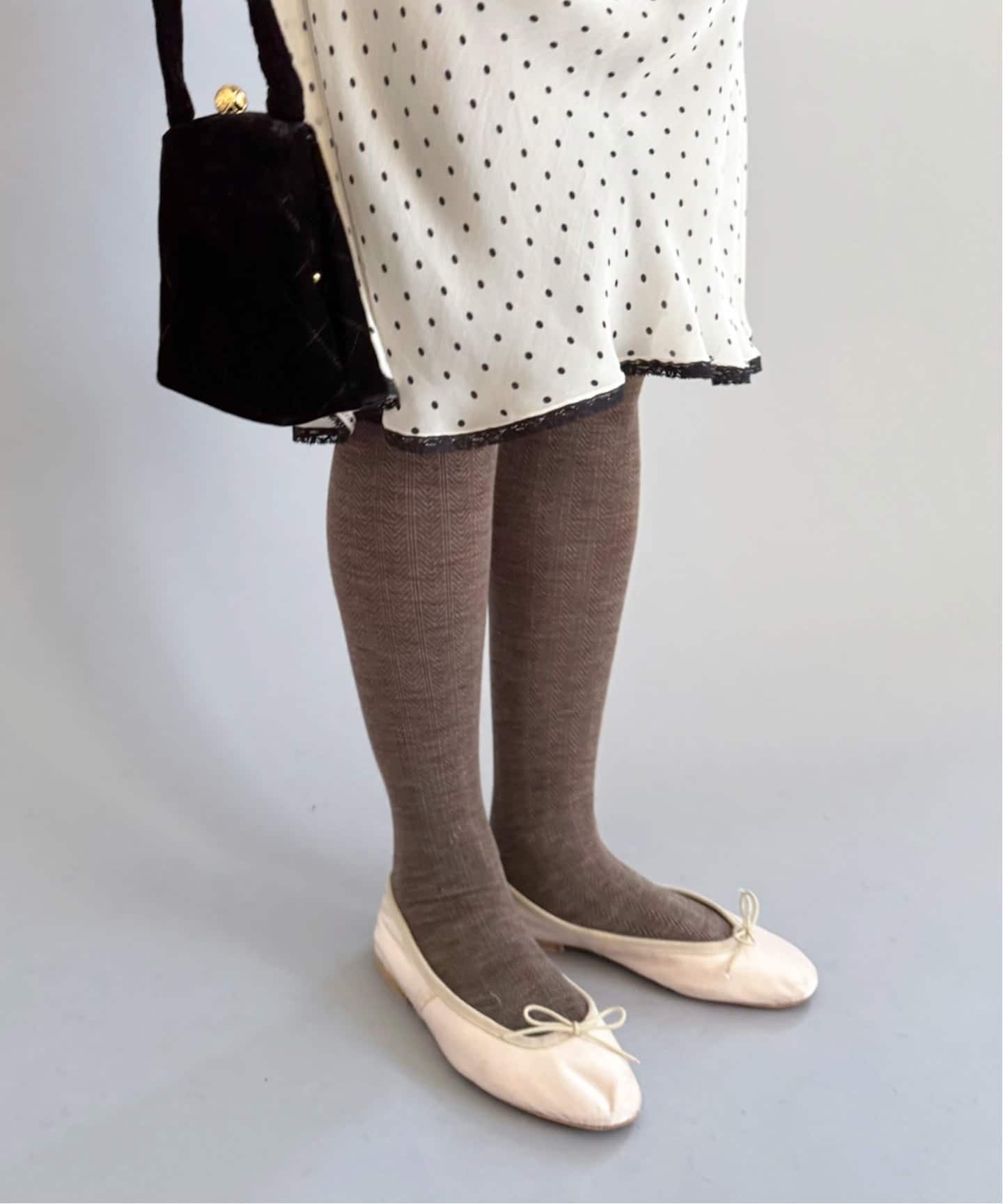 冬でもフェミニンなスタイルが一気に叶うタイツスタイル。
