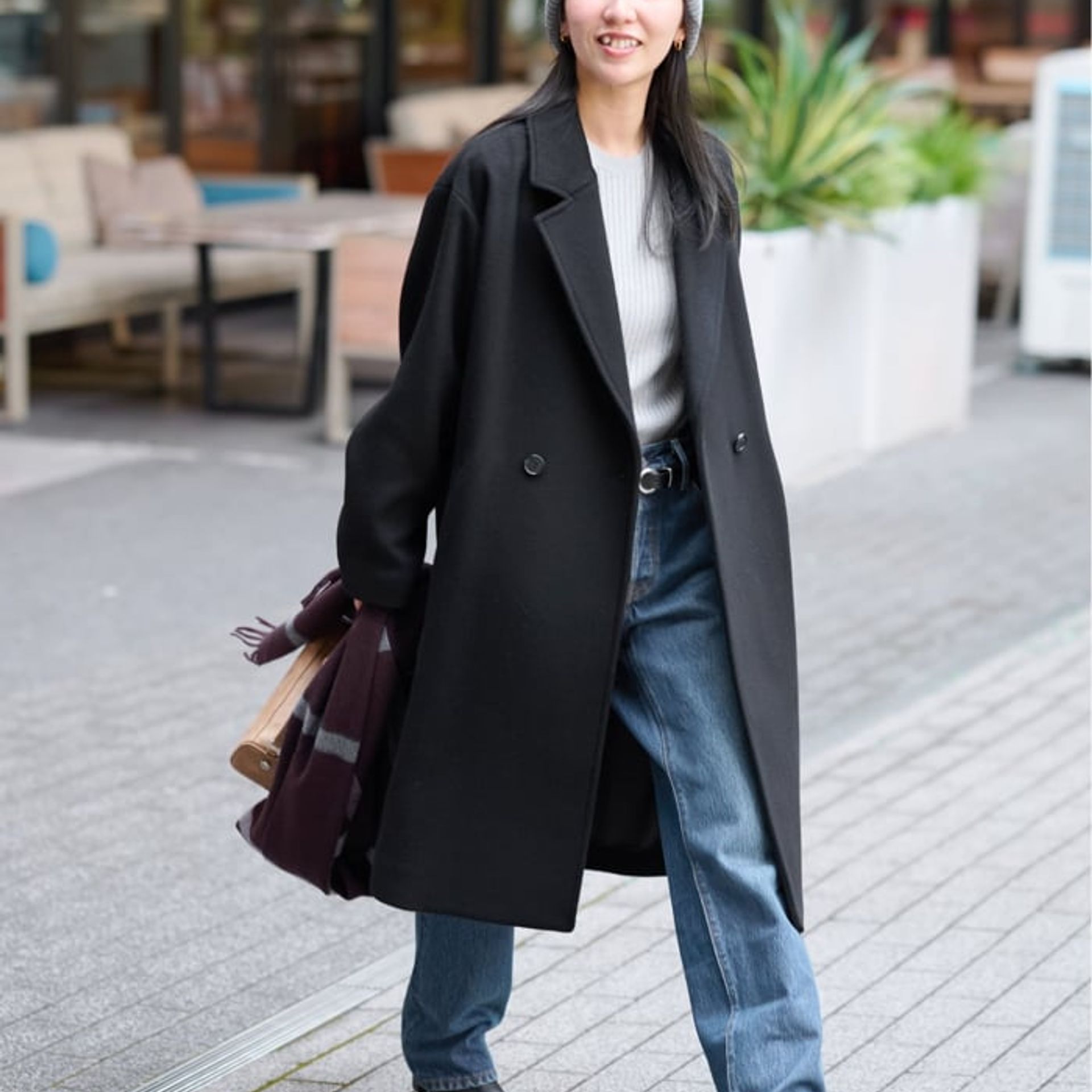 ニットやスウェットを着こみやすいサイズ感もうれしい優秀コートです◎