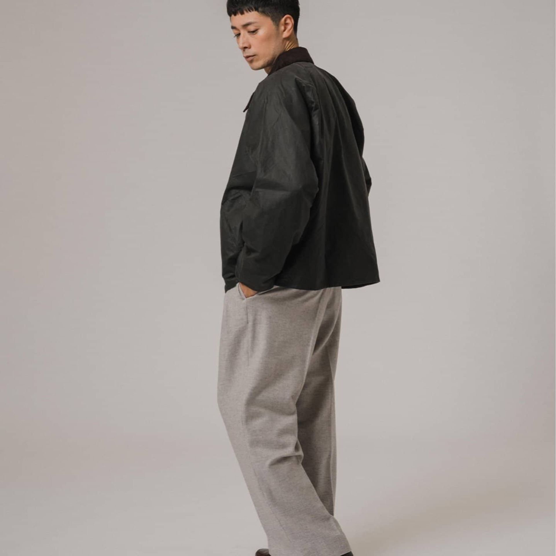 トリプルコラボモデル。定番BEDALEを現代風にアップデート。オーガニックコットン素材で軽やか、撥水性も高く秋~春まで活躍。ブラウンカラーは落ち着きとトレンド感を両立した今期シーズンの一押しです。