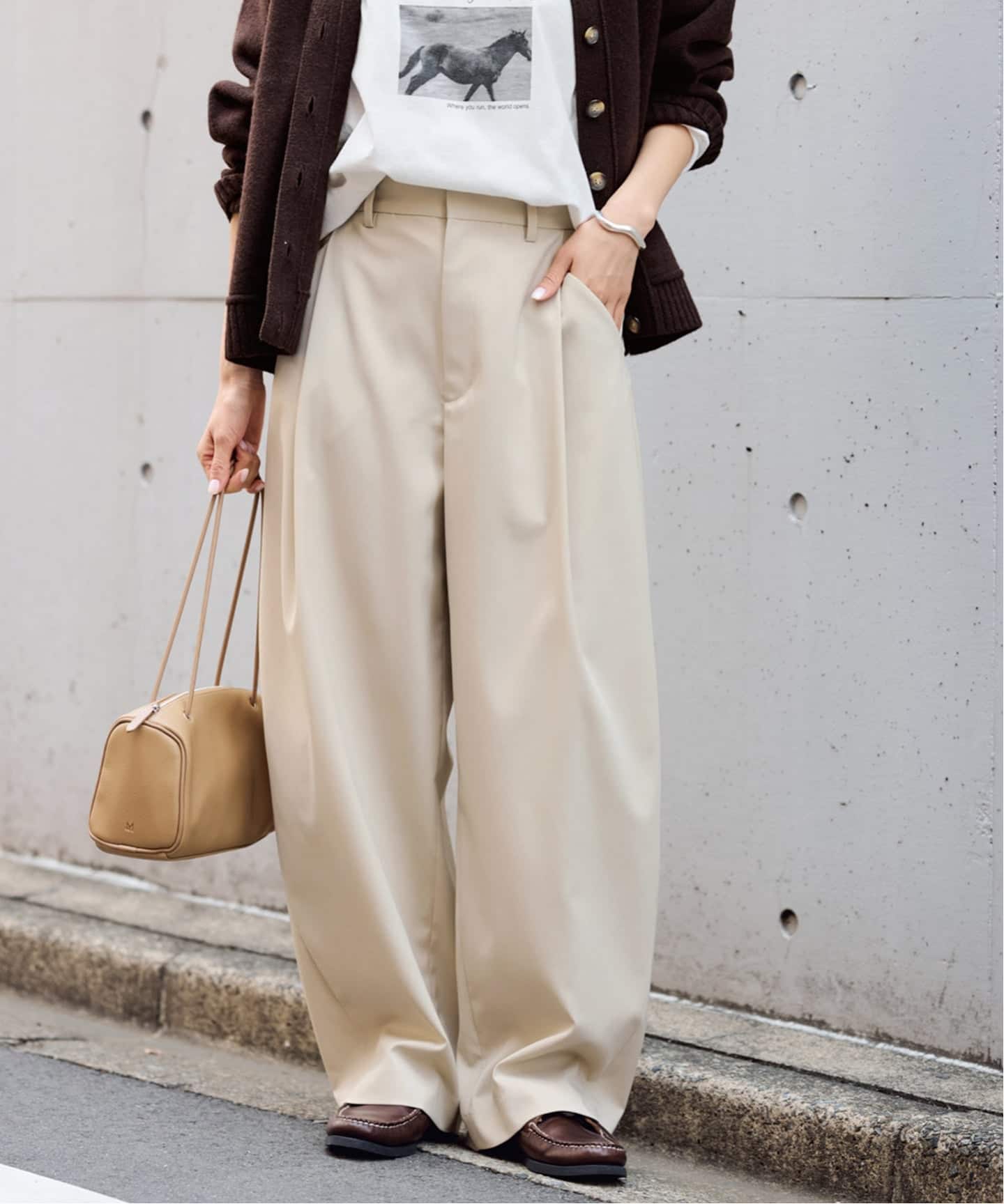 ワイドな身幅に対して着丈を調節することで、バランスが取りやすいようにデザインしました。