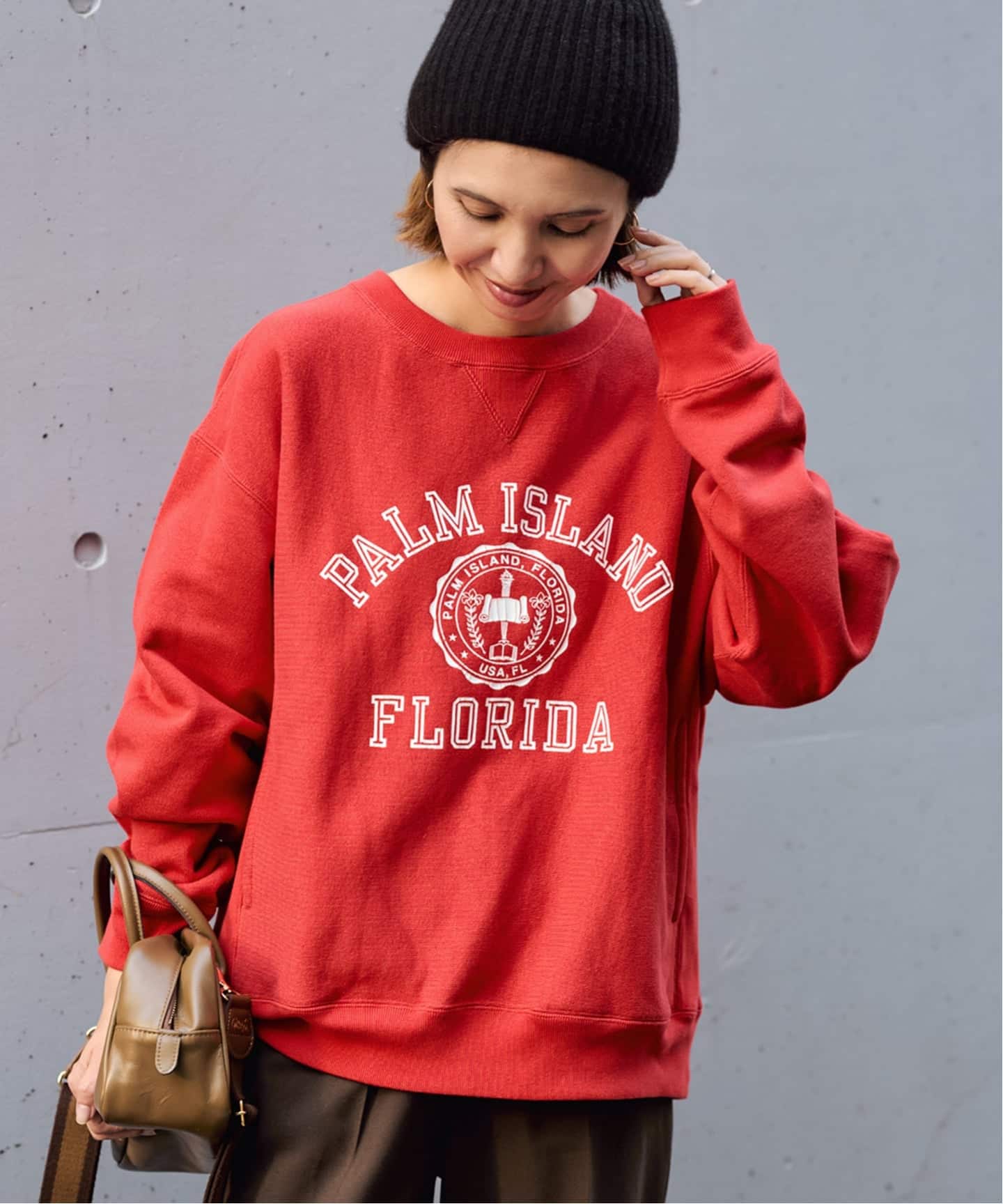 人気のロゴスウェットをベースに、着丈やシルエットを微調整し、よりバランスの取れた仕上がりに。