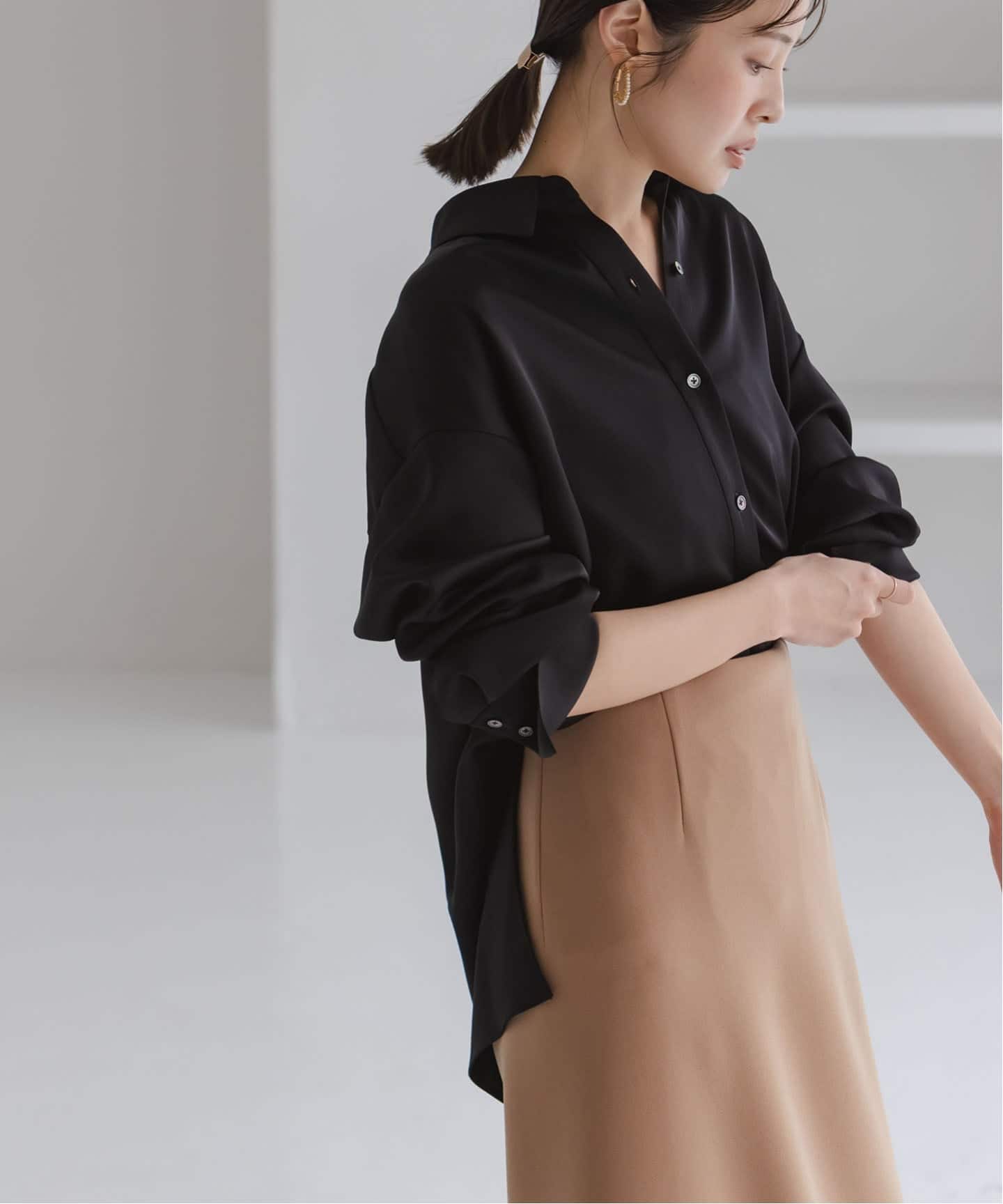 ボトムスはサテンパンツを合わせて、艶と軽やかさをプラスして。