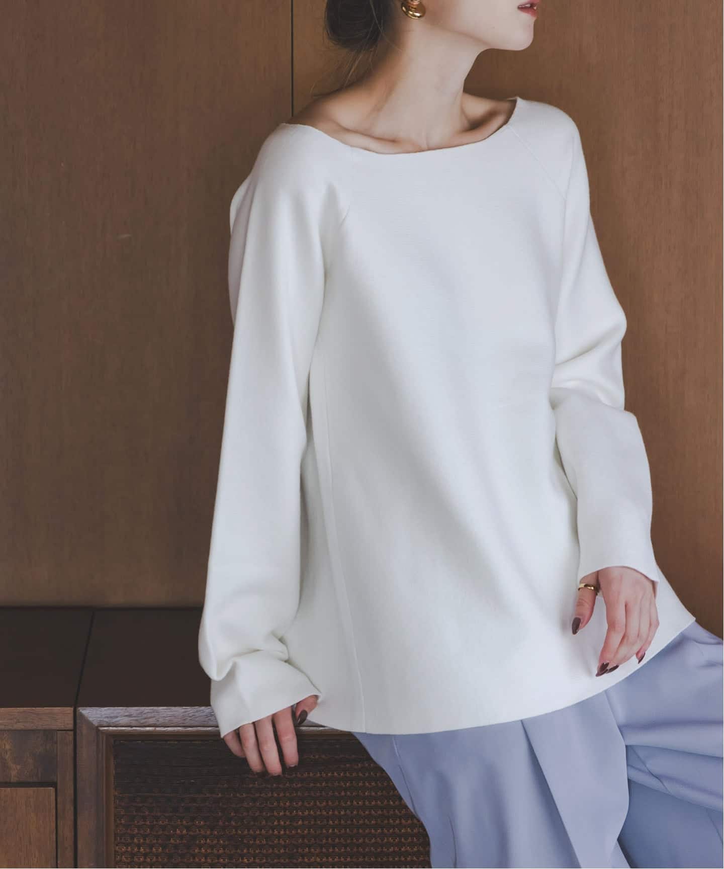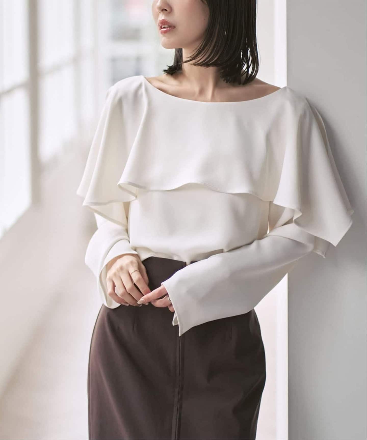 インはデコルテが開くトップスを合わせて、顔周りをすっきりと仕上げて。