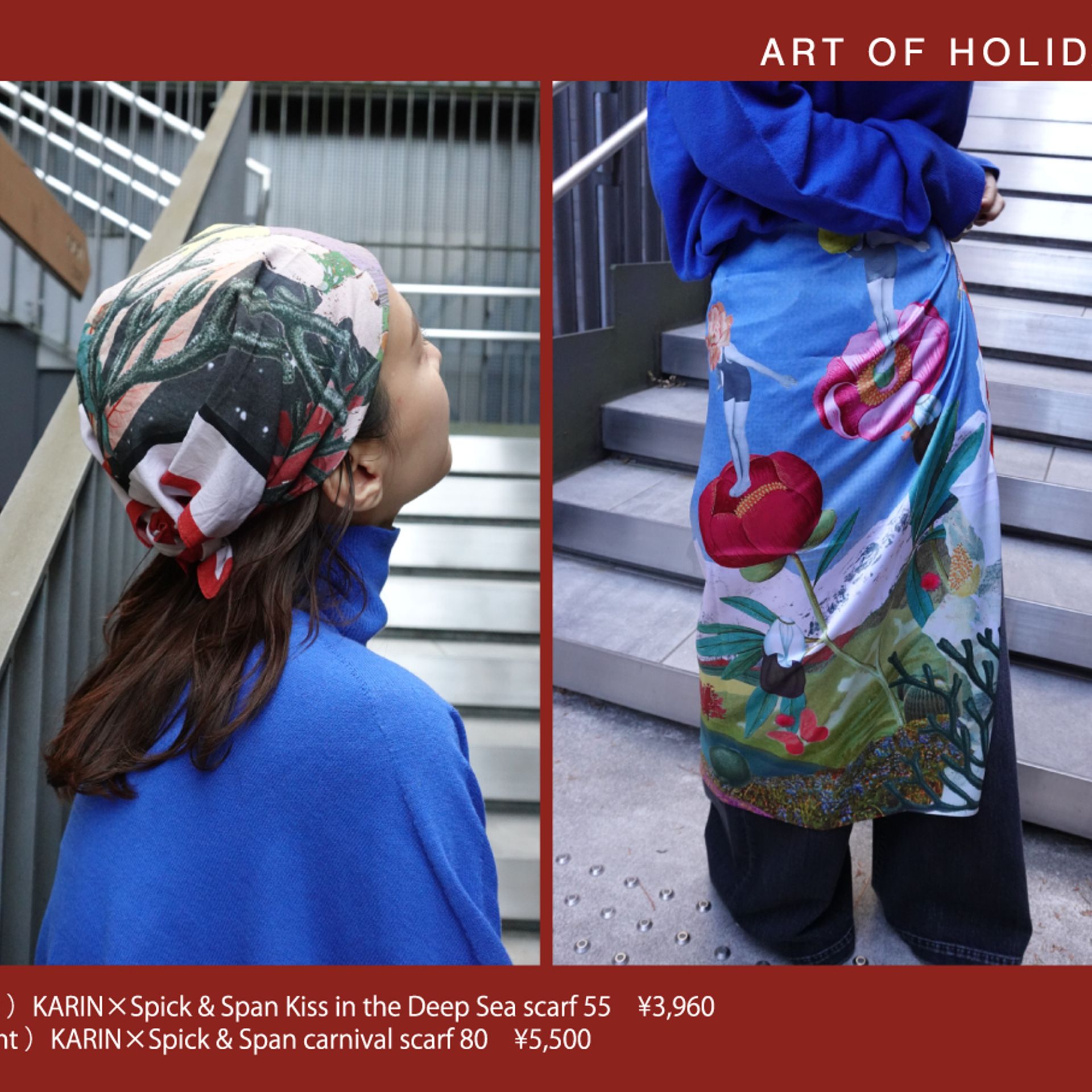 また、12/4(木)よりSpick & Span NEWoMan高輪店限定でコラボアイテムのスカーフとチャームを先行販売、バッグを受注販売いたします。