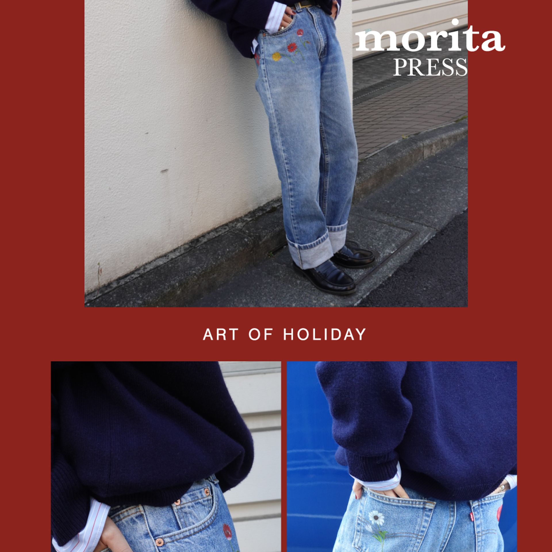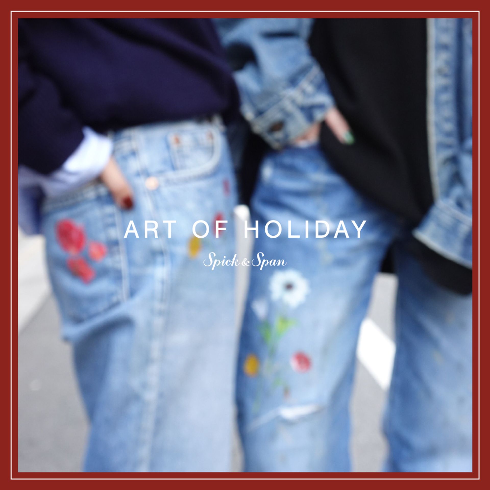Spick & Spanではお馴染みのデニムレーベル「5 1/2 」シリーズへ花梨さんのアートを贅沢に施してご用意いたしました。着るだけで気分華やぐ特別な一着となっております。数に限りがございますので、ぜひお早めにチェックしてみて下さいね!