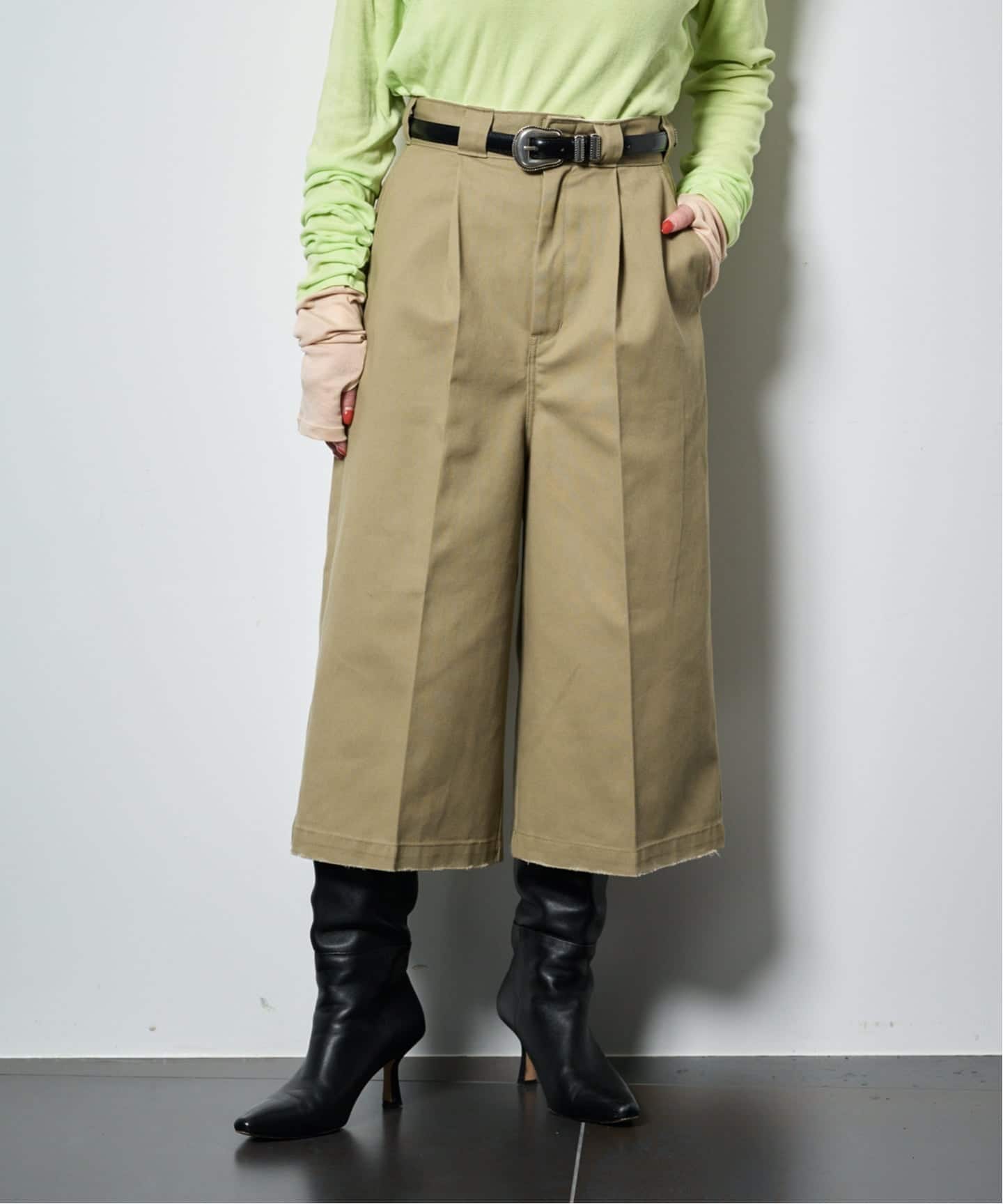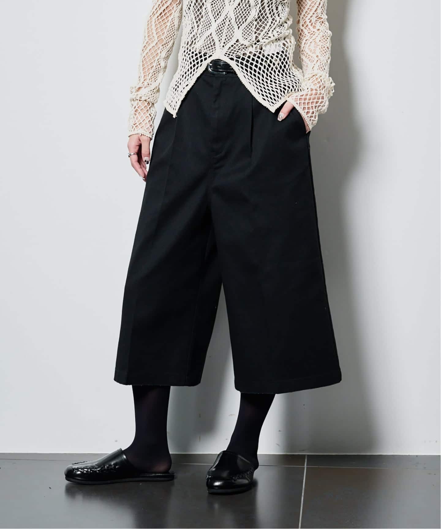 1.深めタックやボリューム感はそのままに、股下をクロップ丈に変更。