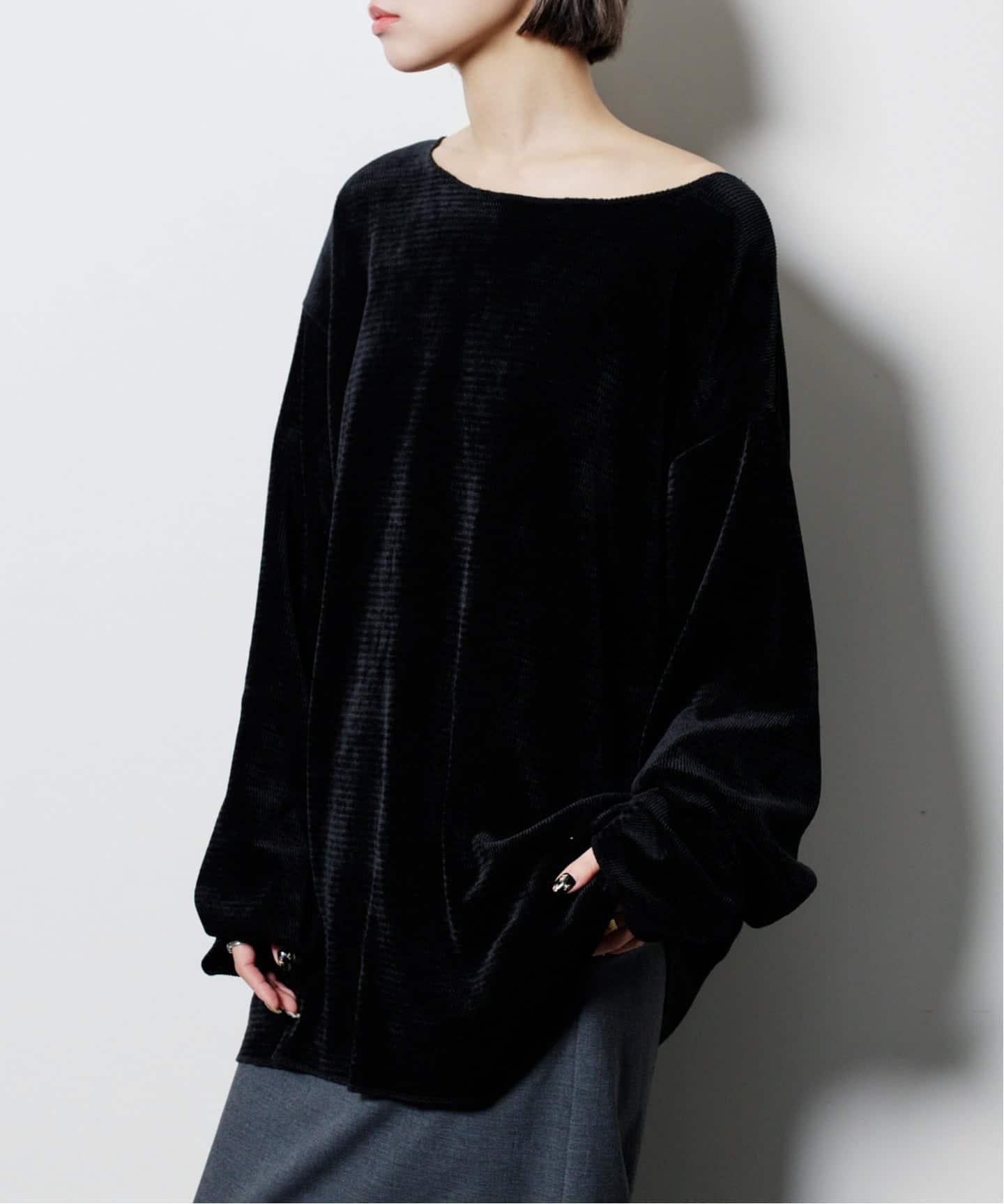 2.オフショルダーとしても、ボートネックとしても着られる2WAY仕様。