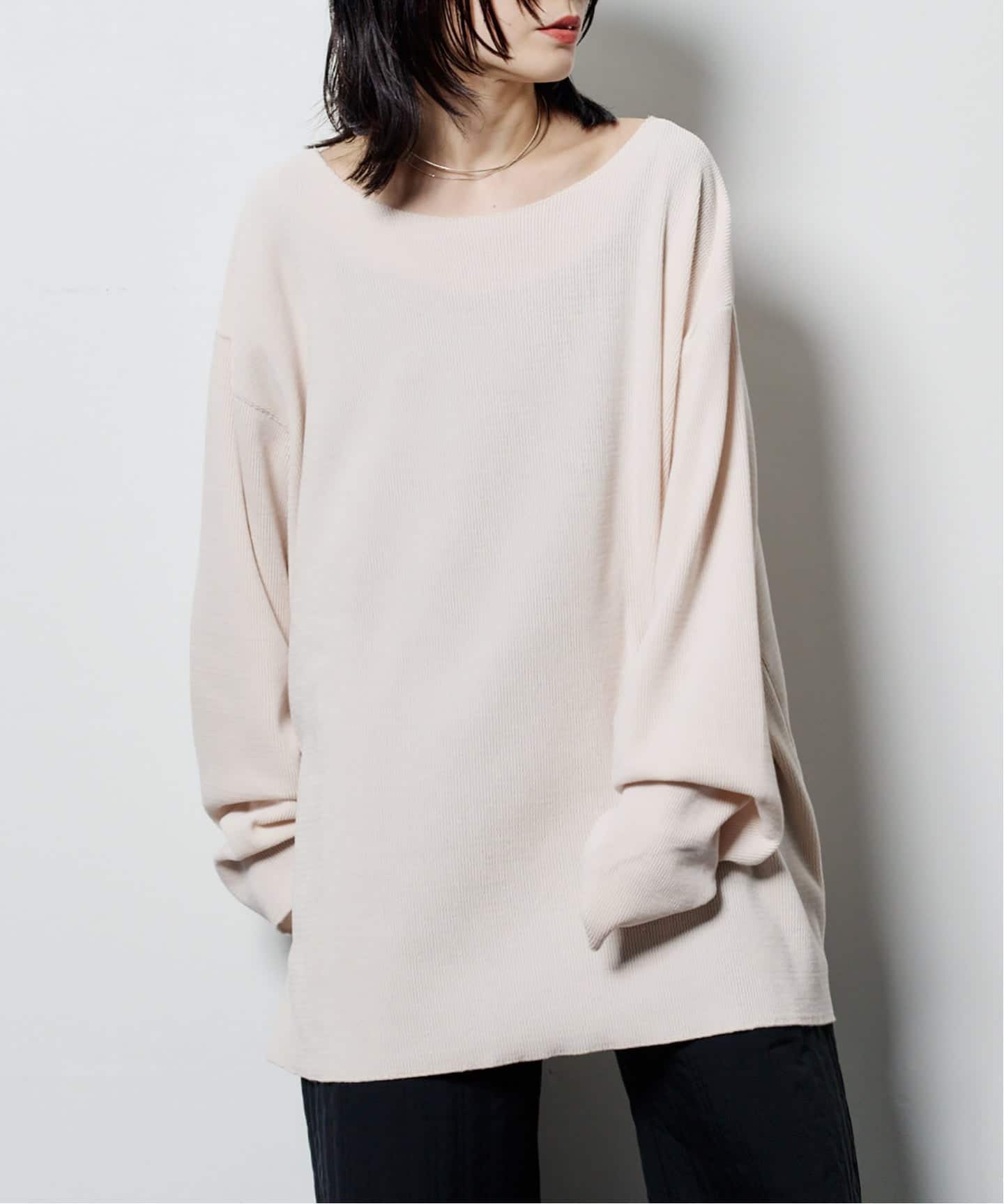 2.ビッグシルエットのサイズに、しっかり目のリブでメリハリを調整。