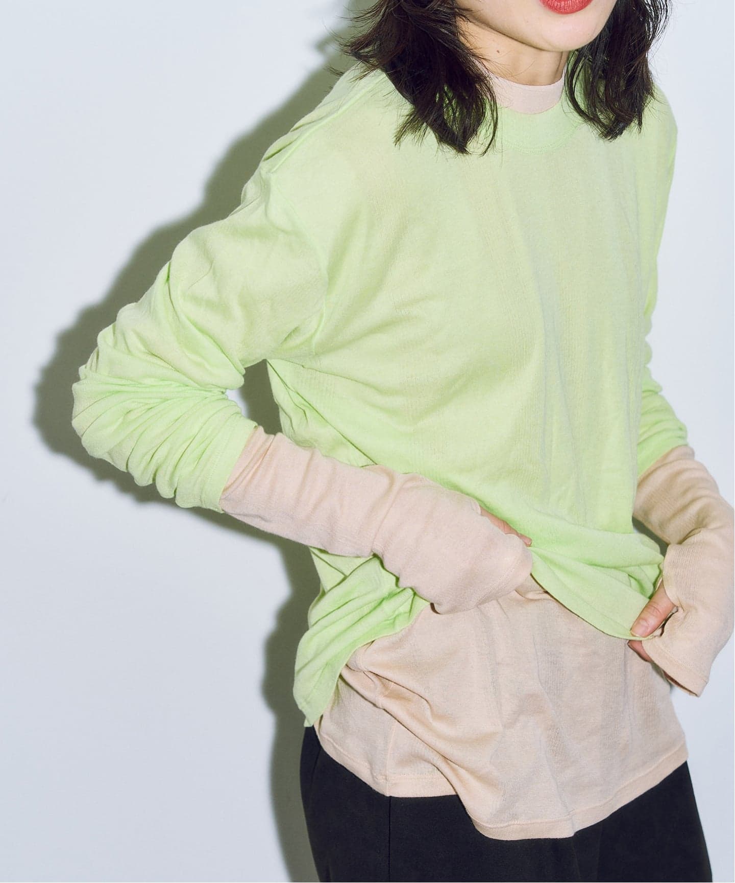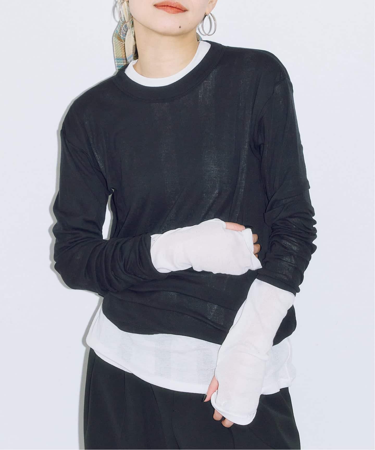 4.袖口のサムホールが、重ね着した時の“チラ見えアクセント”に。
