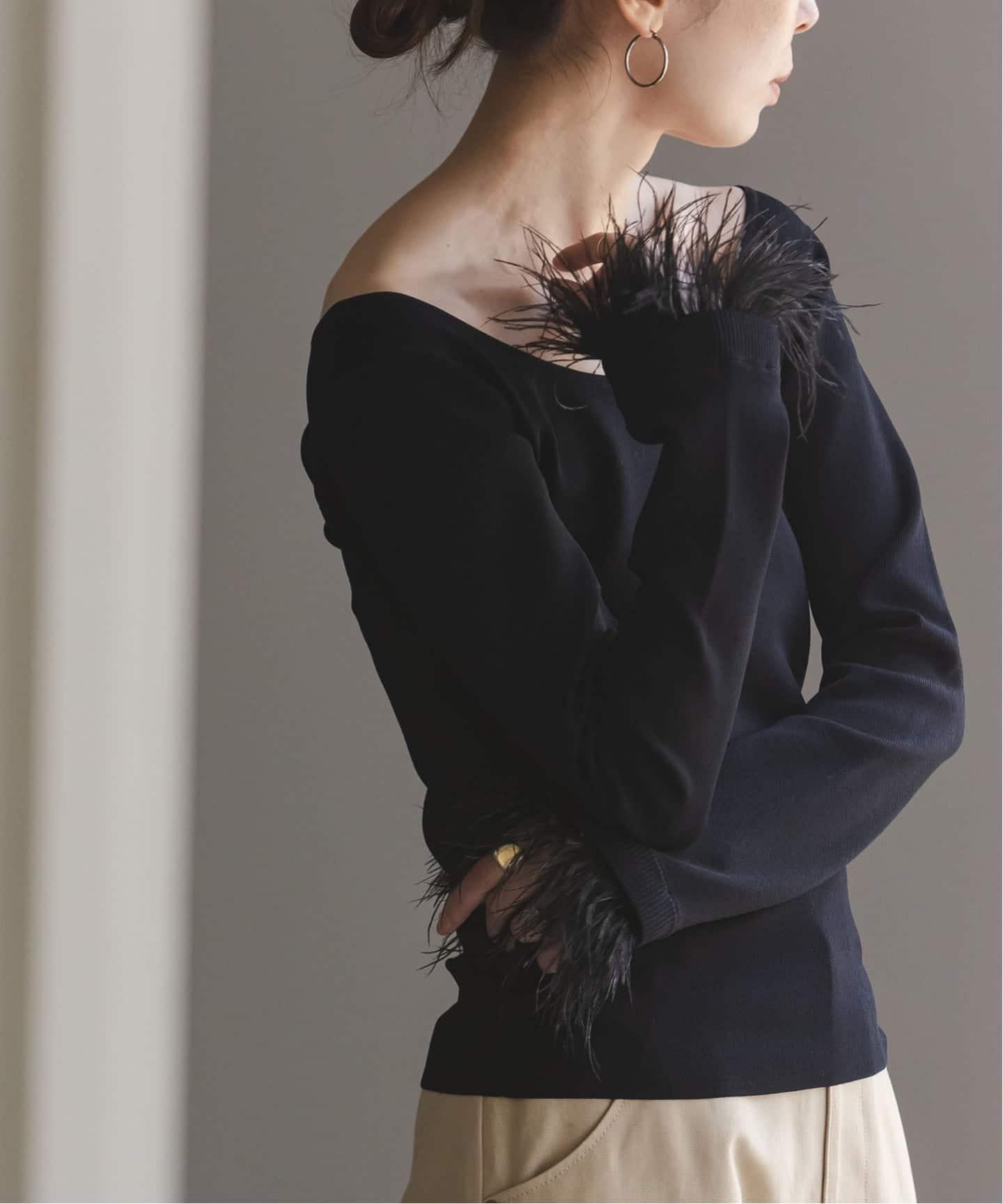 異素材の組み合わせが奥行きを生み、上品な女性らしさを引き立てます。