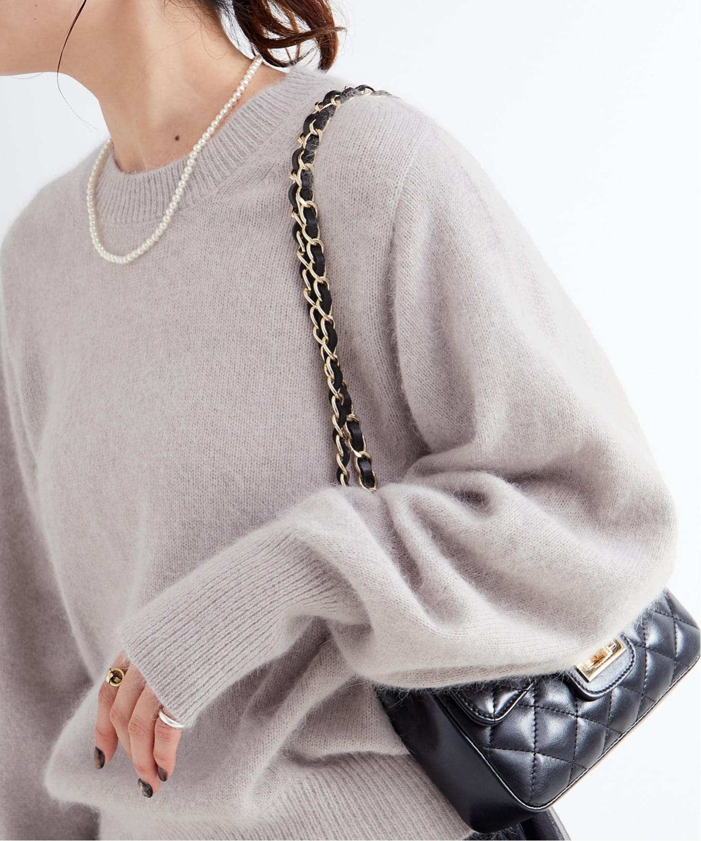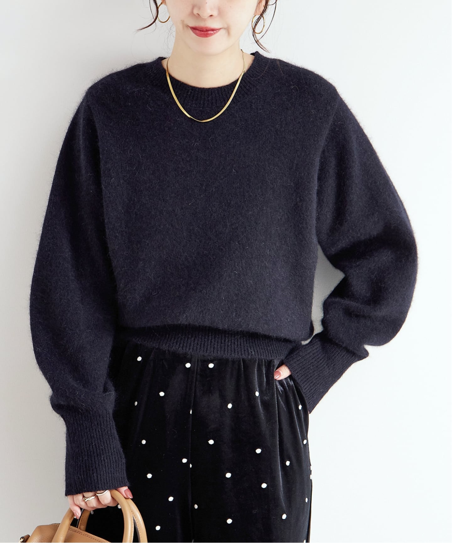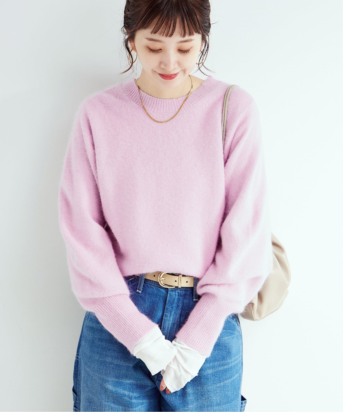 獣毛混の“パフスリーブ”デザインで、ふんわりした袖のボリュームが特徴のニットプルオーバー。