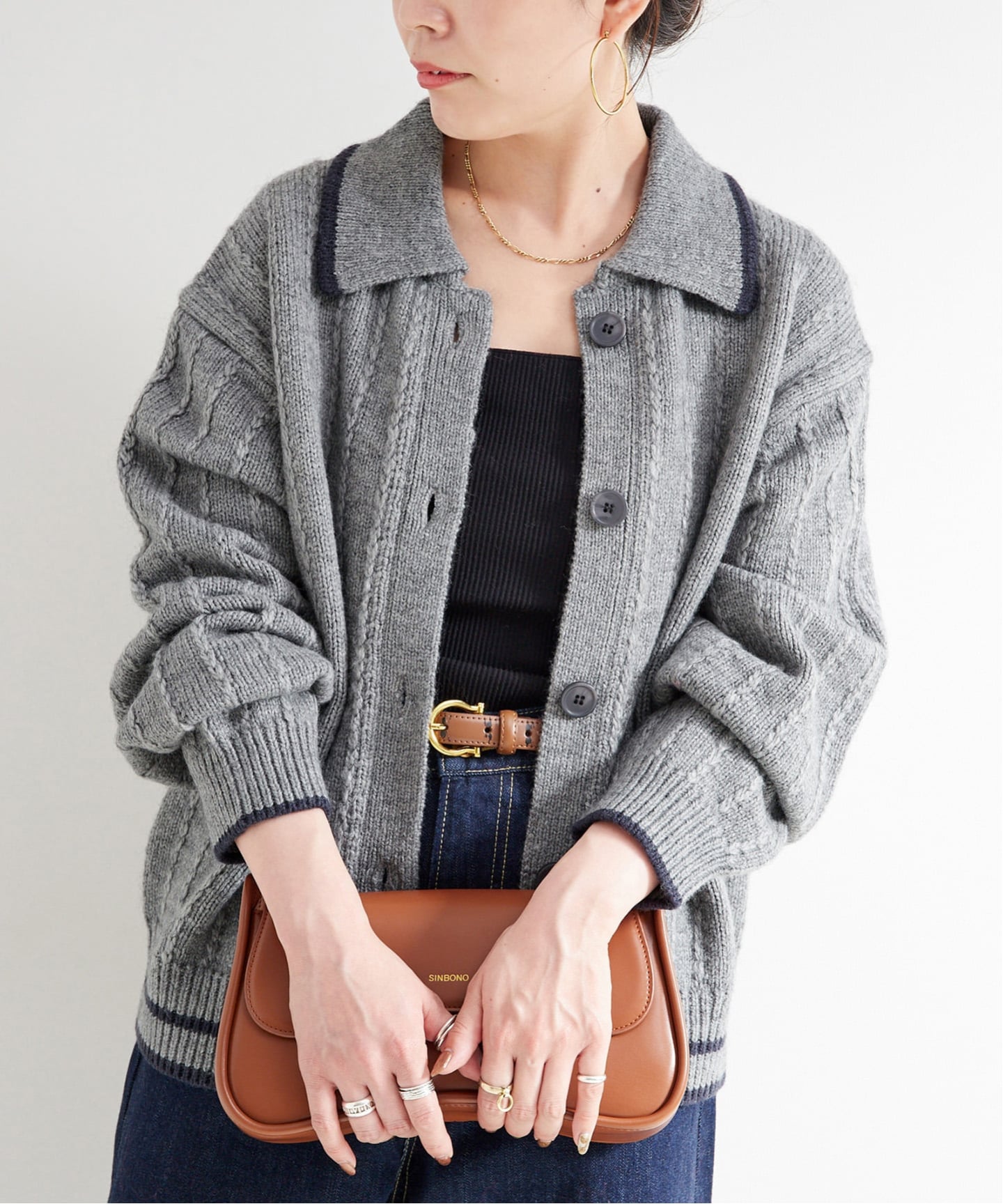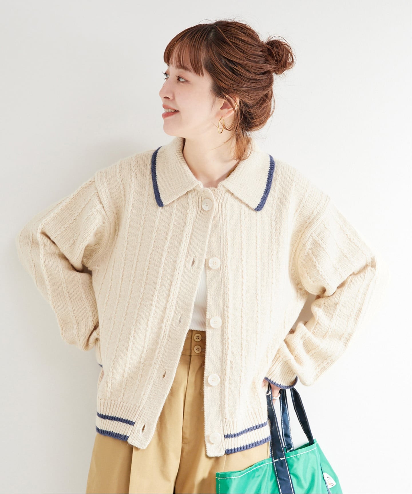 レトロな旬なデザインに配色ラインが効いている、ニットカーディガン。