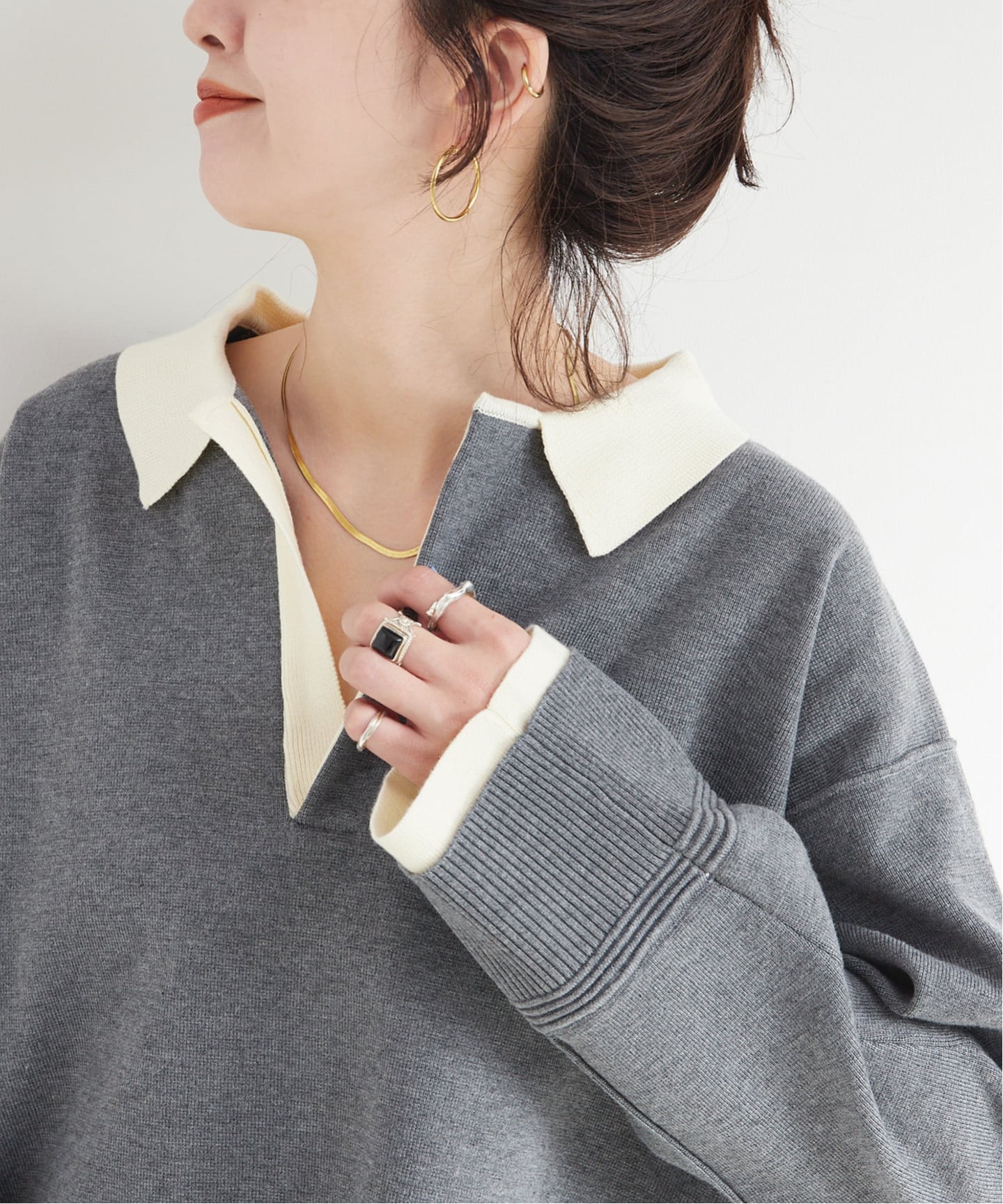 ニットの素材感と襟付きのデザインで、きちんと感を出しやすい一枚です。