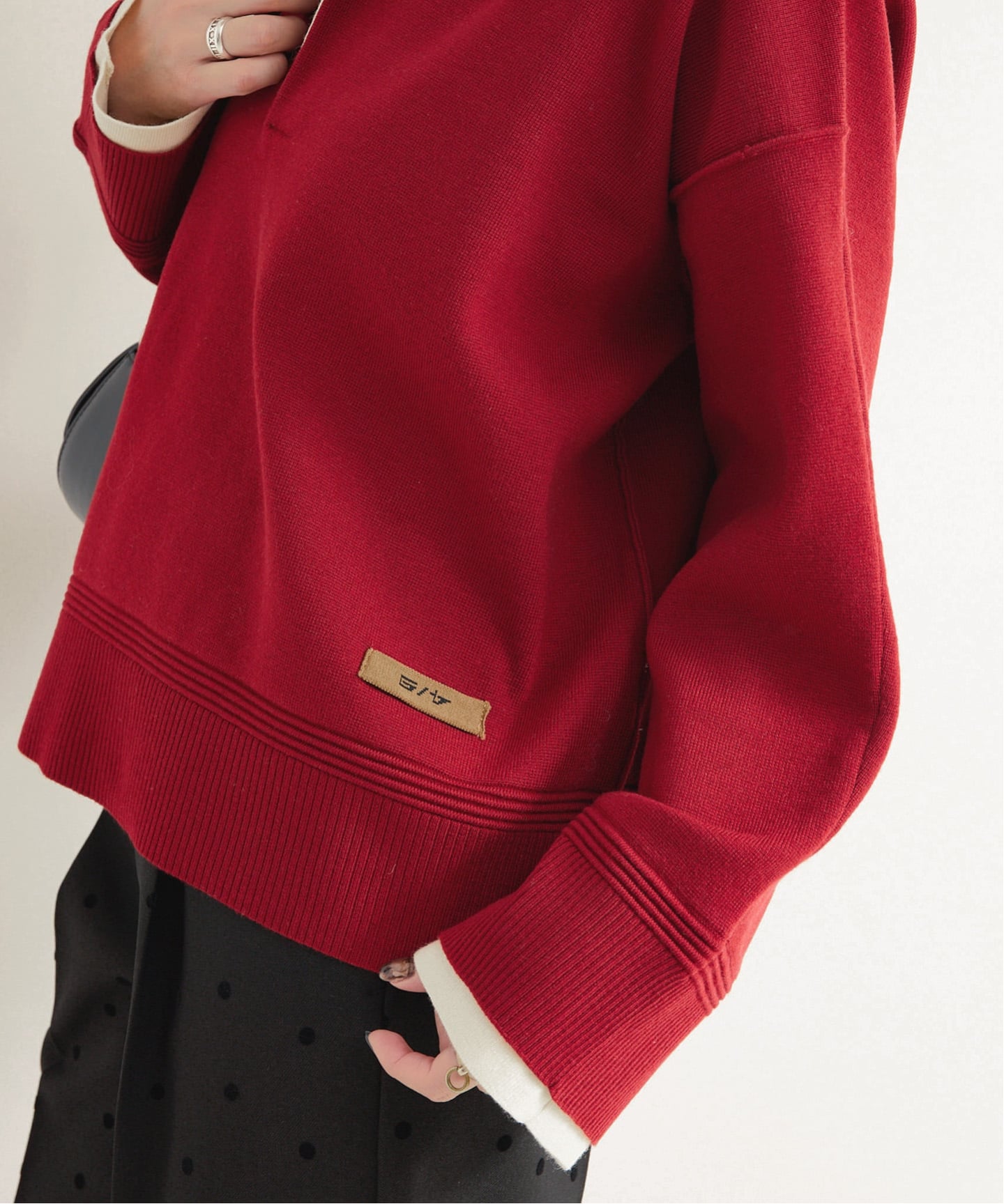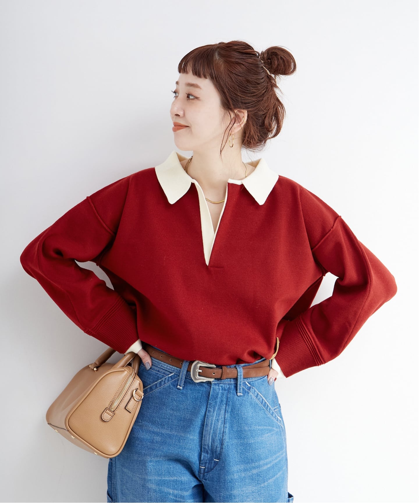 ポロシャツ風のデザインで上品見えで着れる、人気の襟付き二ットプルオーバー。