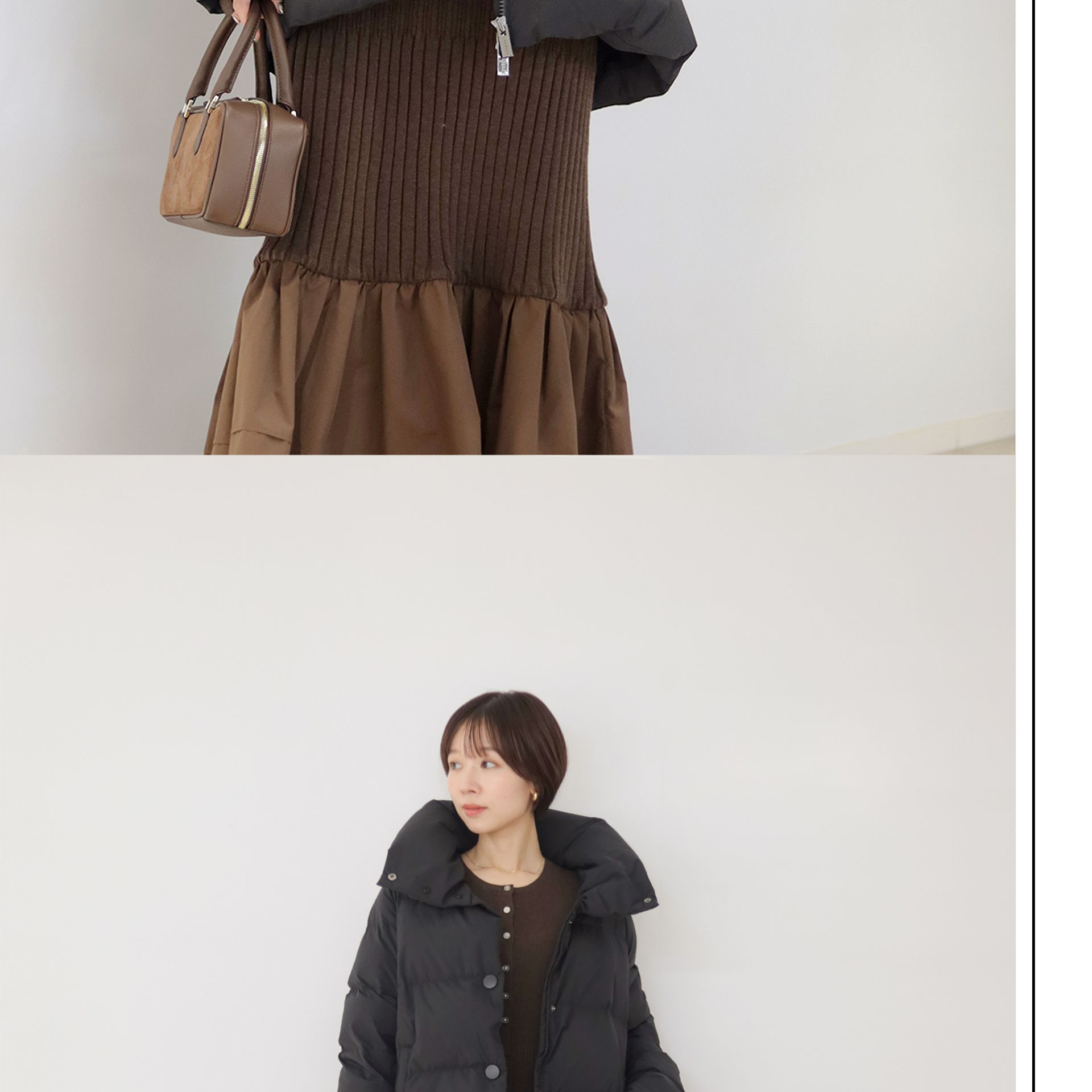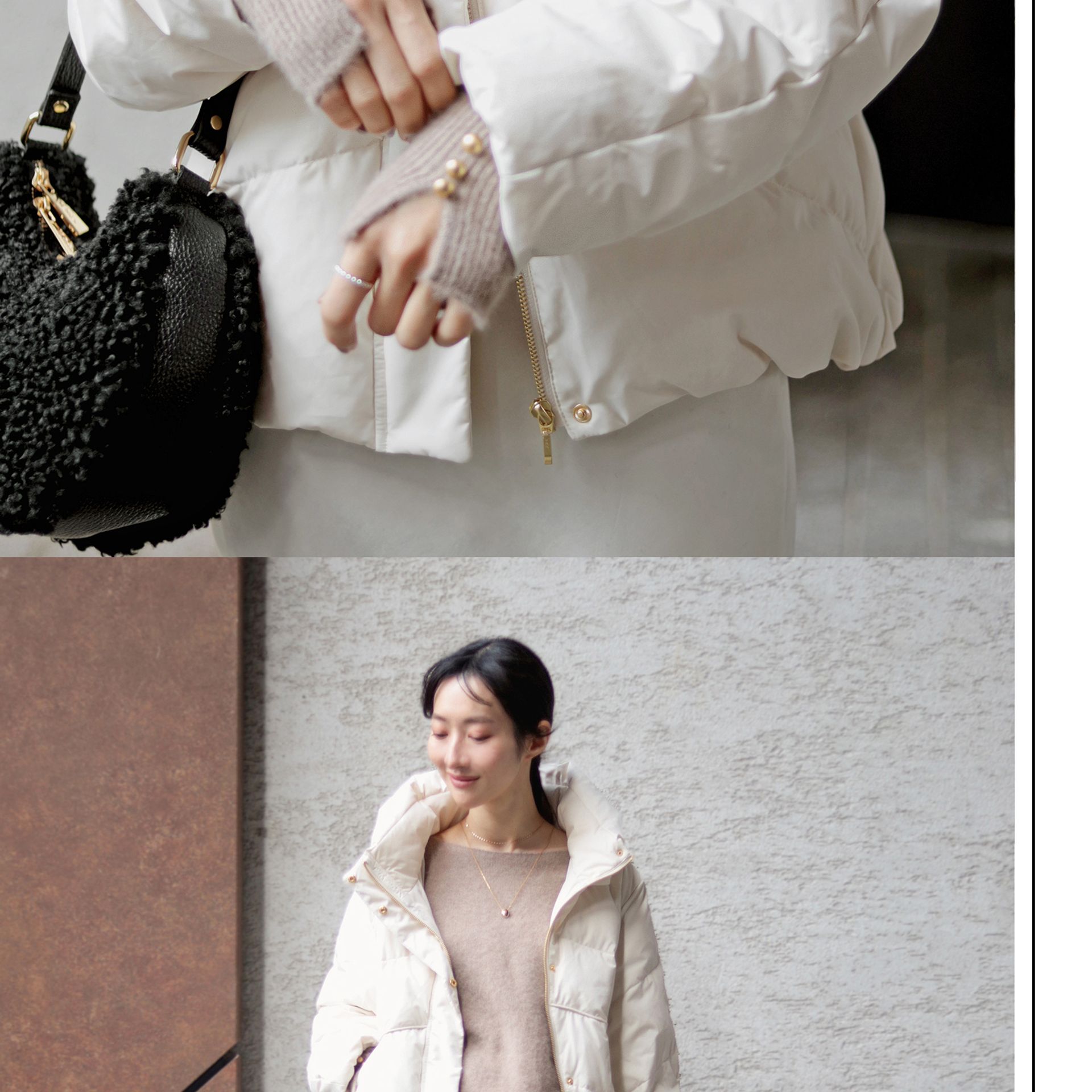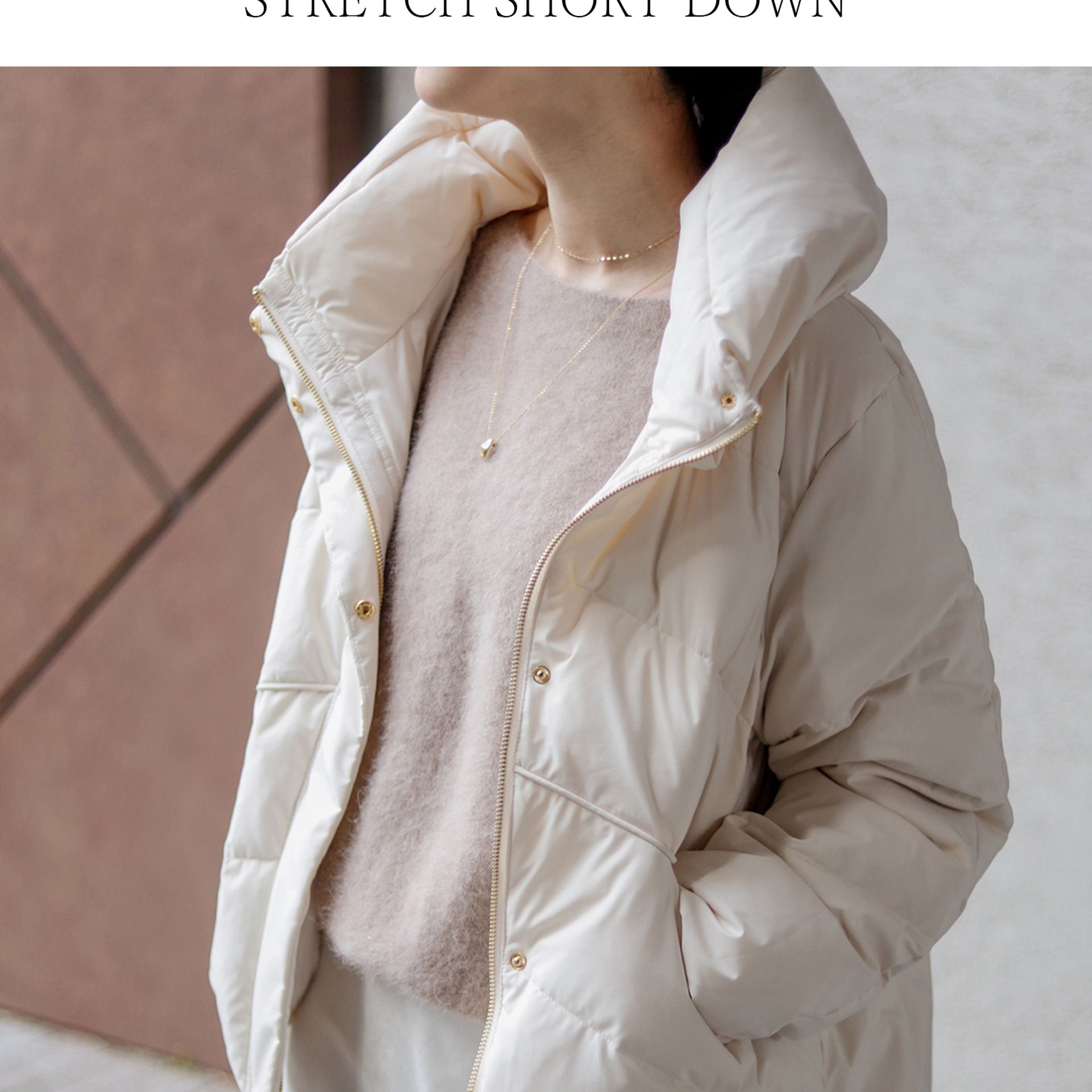 軽さと保温性に優れたダウンを使用し、丸みのあるシルエットが女性らしさを引き立てるショート丈ダウン。斜めのステッチはカジュアルすぎず品良く見え、着ぶくれ見えも防いでくれます。