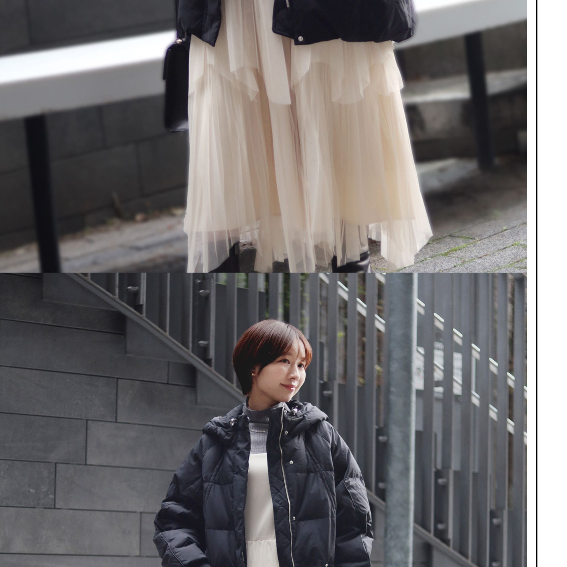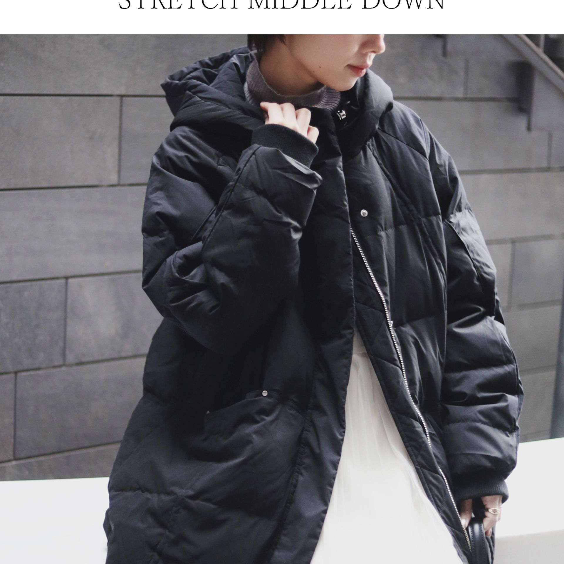 軽さと保温性に優れたダウンを使用し、デイリーシーンに万能なミドル丈。フード付きでありながら落ち着いた印象があり、着ぶくれして見えにくいので、大人のデイリーシーンに活躍します。