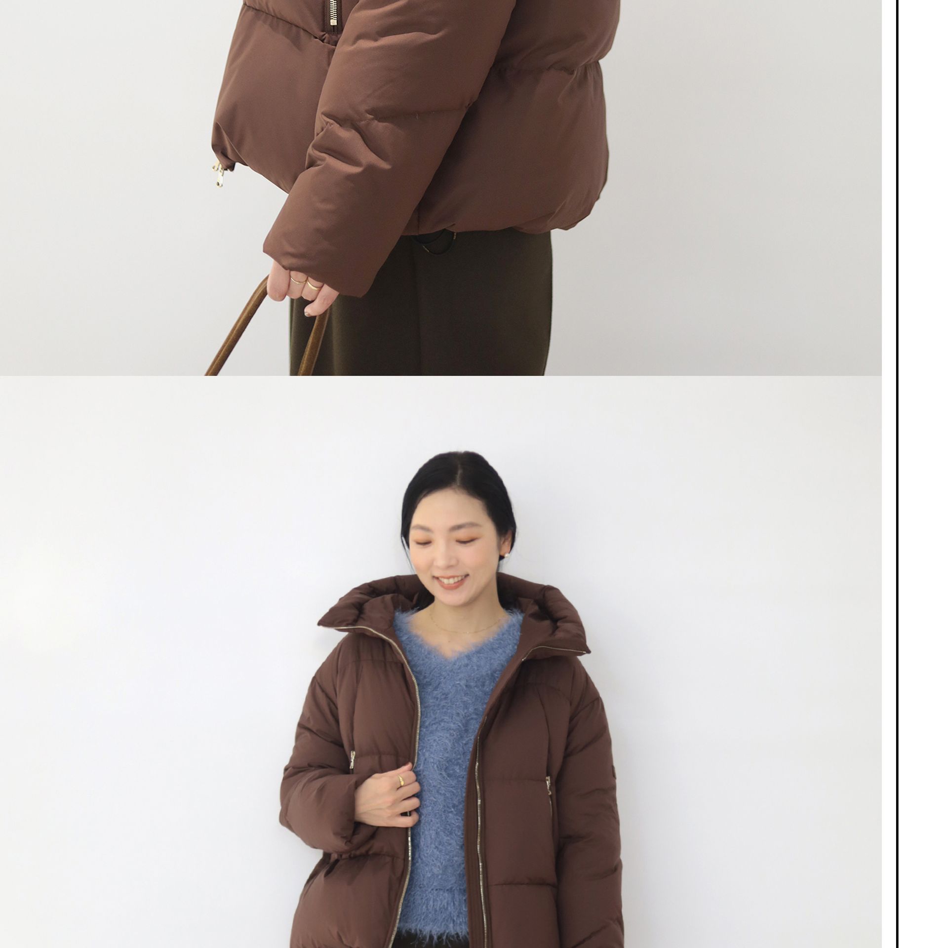 洗練された印象のショートダウンは、ヒップにかかる絶妙な着丈はどんなボトムともバランスが取りやすく、後ろウエスト部分のドロスト仕様でシルエット調整も可能です。