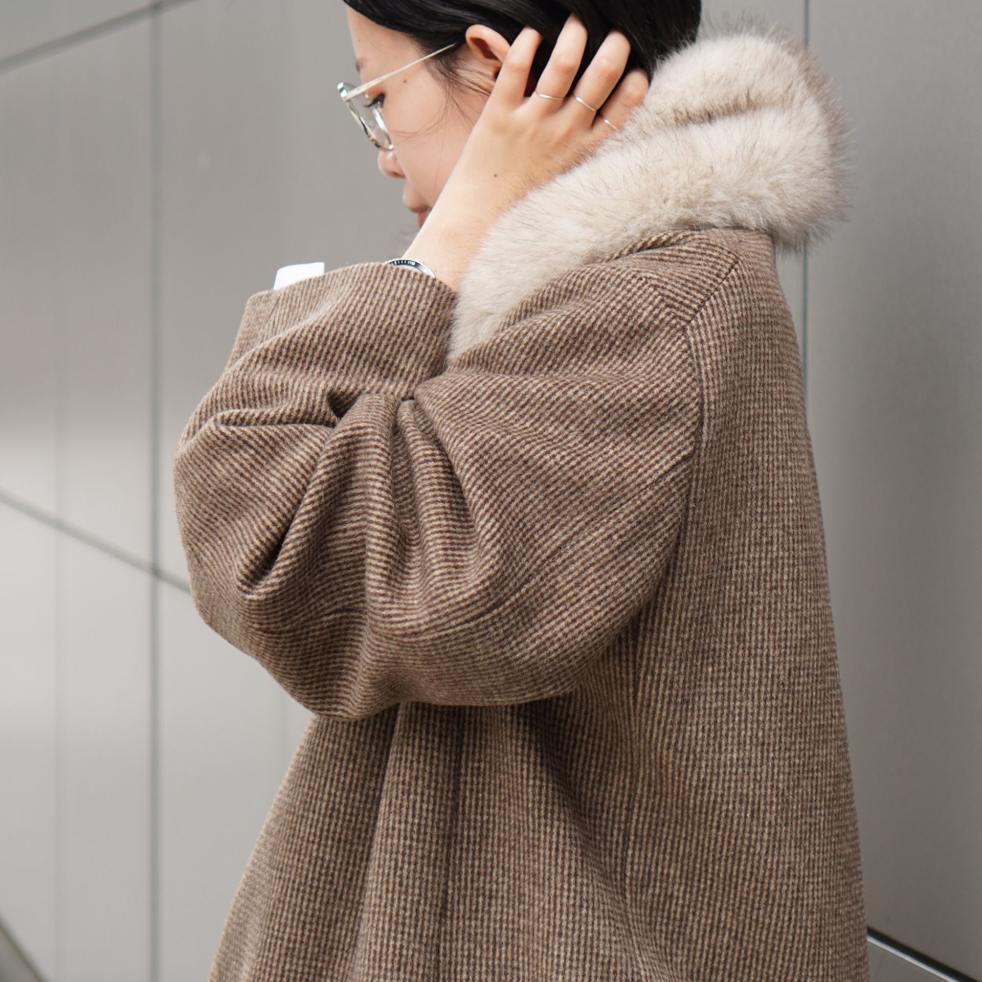 細かめなチェック柄の生地にシャギーをかけることで柔らかなニュアンスに。