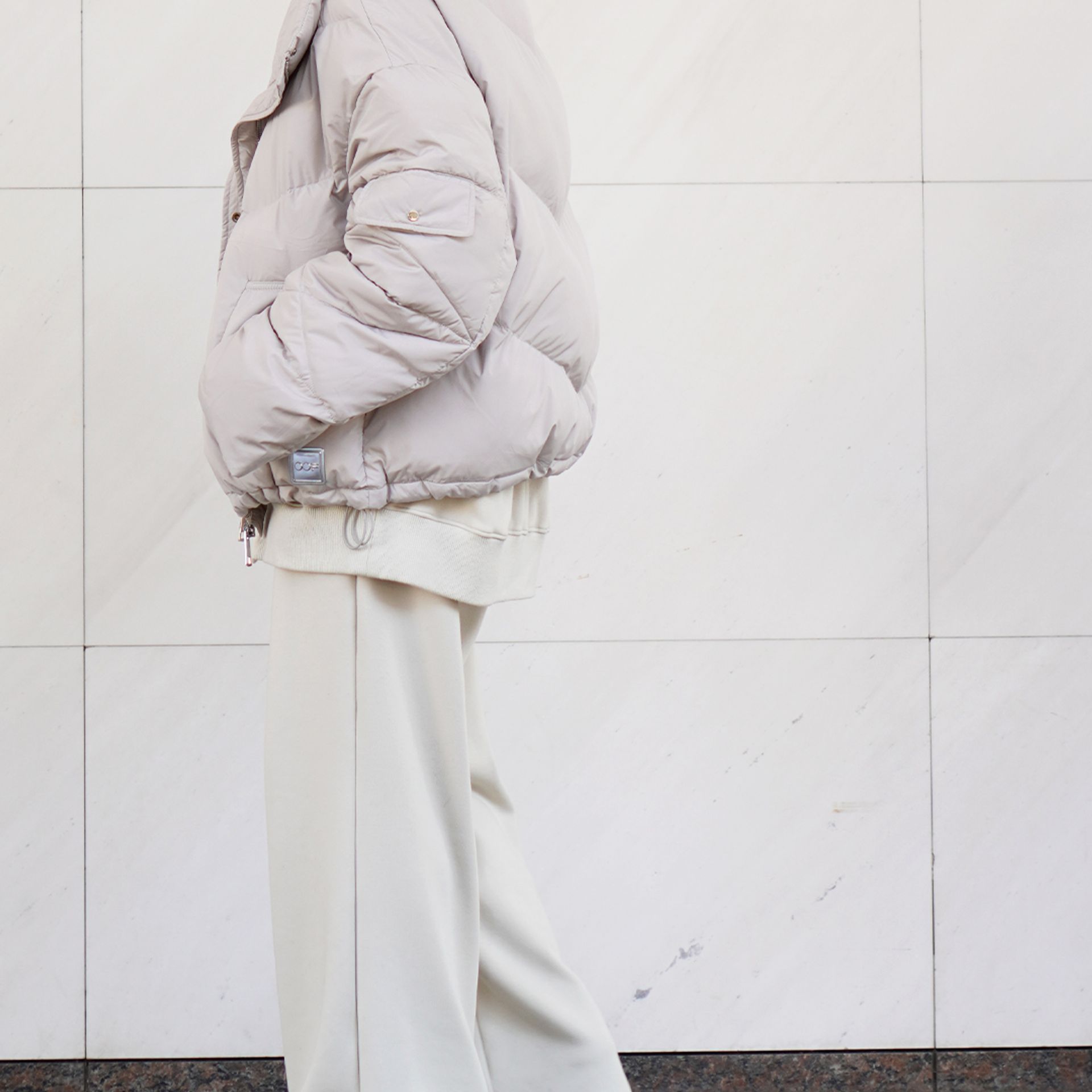 肩周りには綿を入れないことで、着膨れすることなくスッキリと見えるバランスにもこだわった1枚。