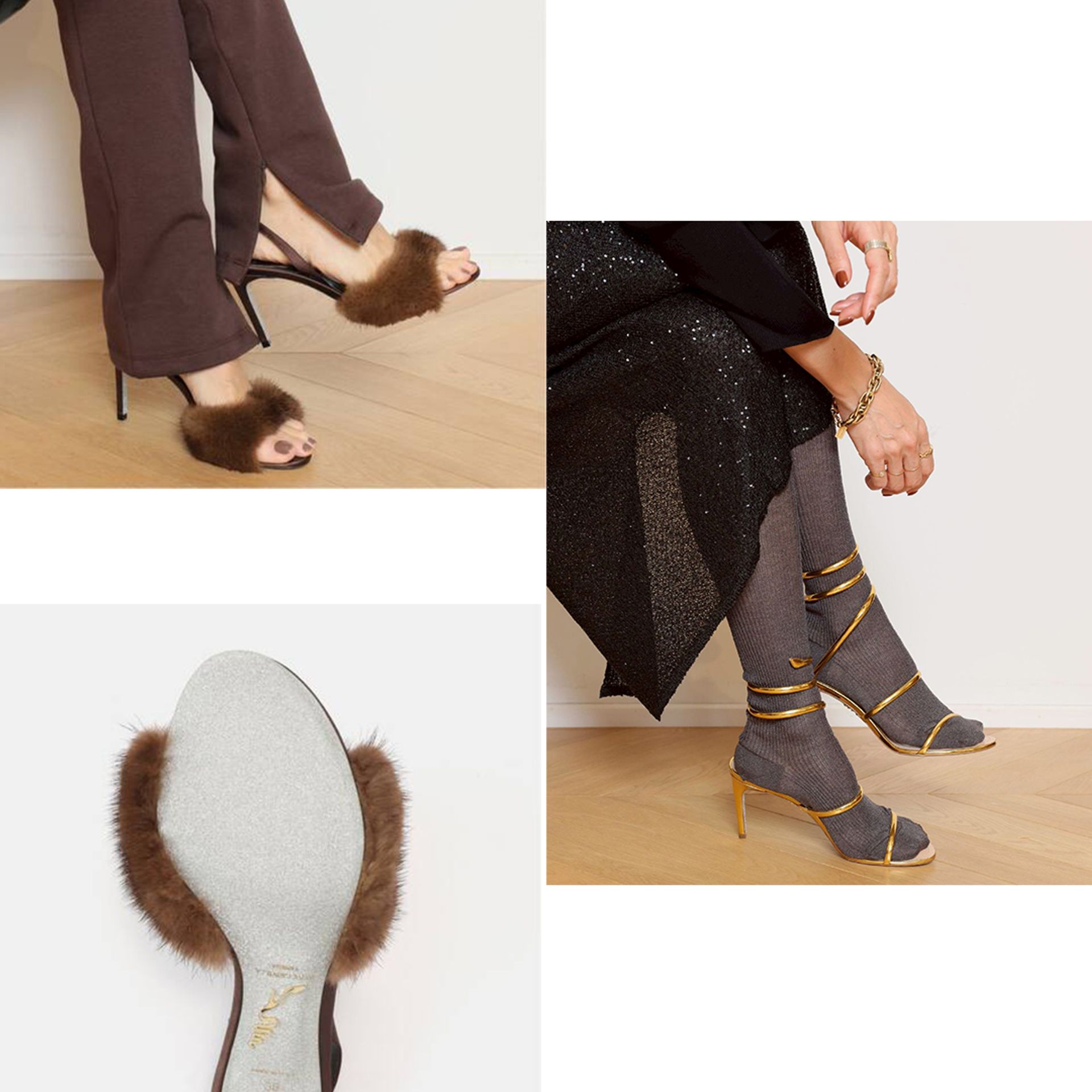 ミンクファーや輝くアウトソールが足元を華やかに演出。日常からパーティーまで、脚を美しく見せるラグジュアリーシューズです。