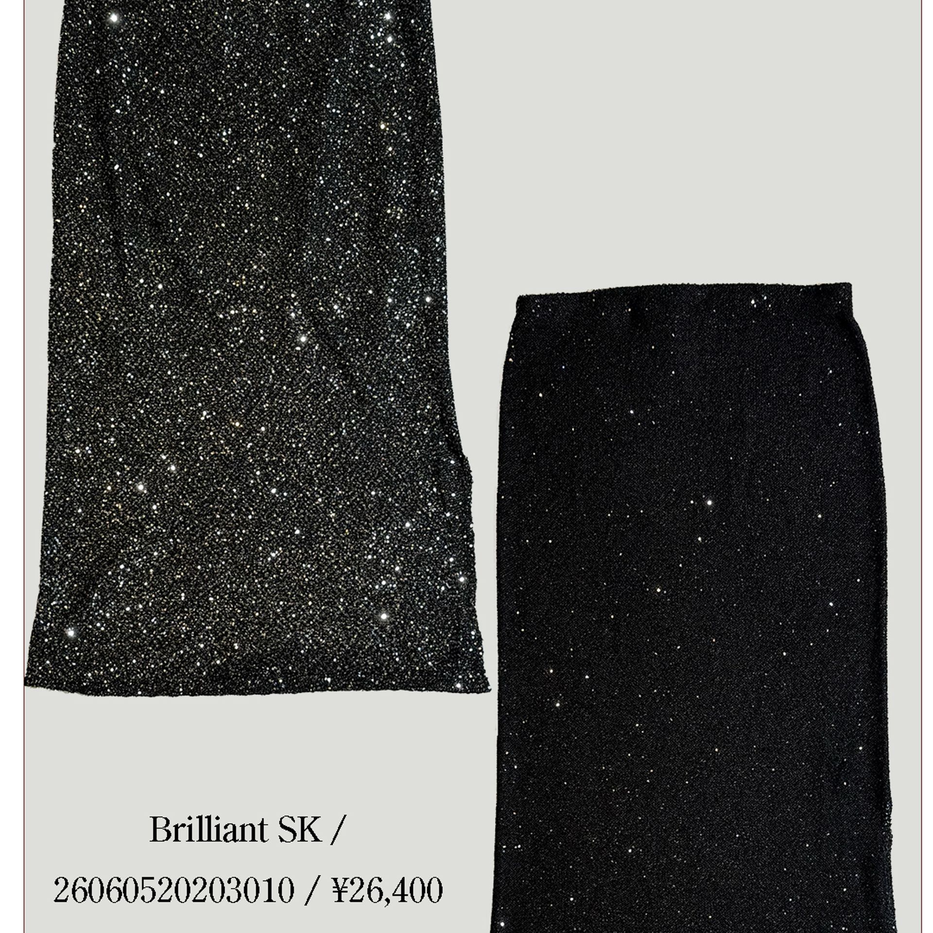 昨年もご好評いただいたBrilliantスカートが今年も登場。スパンコールが煌めくアイキャッチな一枚は、カジュアルなトップスをクラスアップし、女性らしさも添えてくれます。すっきりとしたIラインシルエットは美しく、ペチコートなしでもシアー感を活かしたレイヤードスタイルが楽しめるのも魅力です。コーディネートに取り入れるだけで新鮮な表情を生み出すスカートです。
