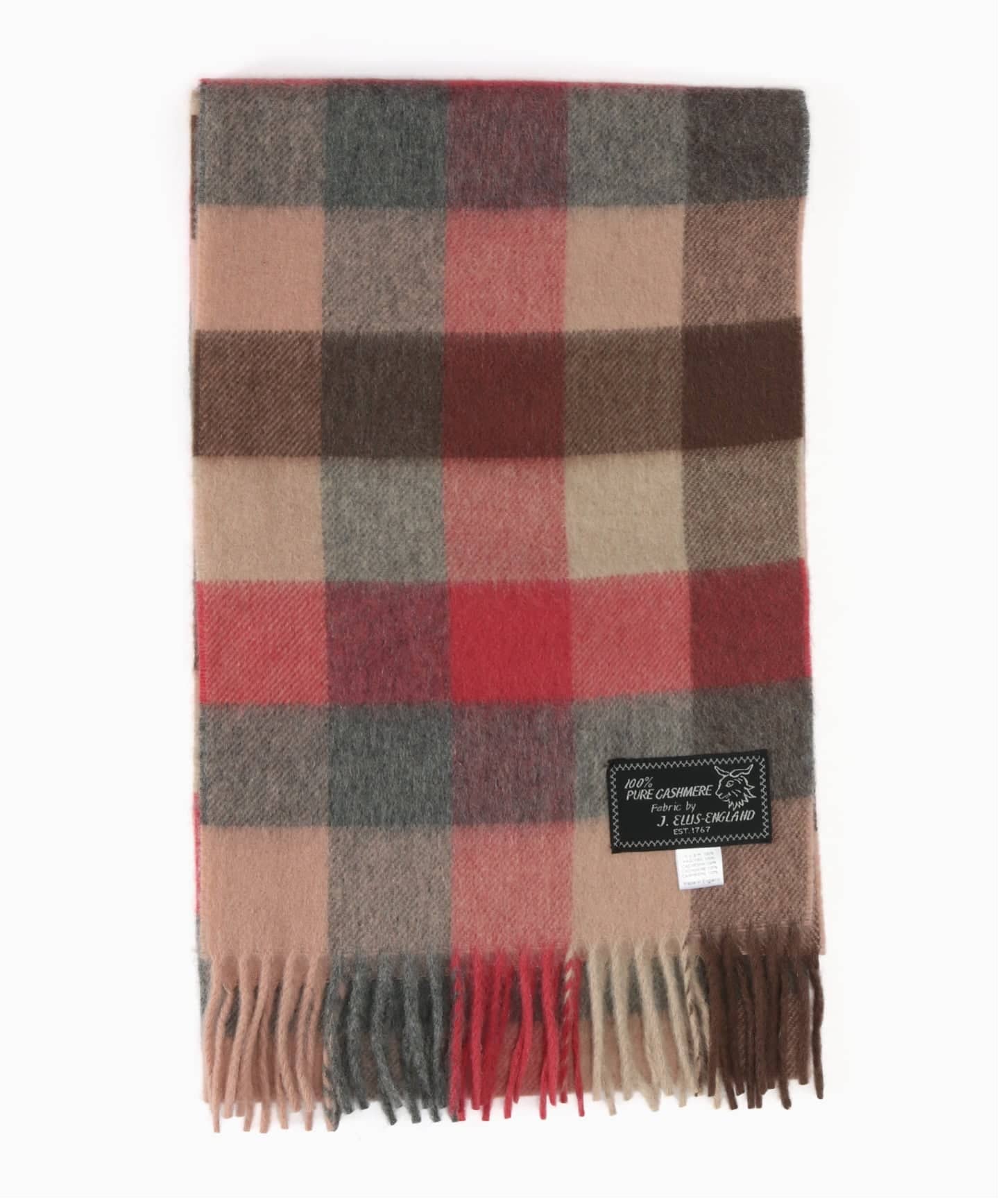 英国らしいチェック柄とふんわりした柔らかさが魅力。ひと巻きで冬らしい表情をつくれる使い勝手のよさがあり、男女どちらにも馴染む絶妙な色柄が揃っています。シェアして使うのにもちょうどよく、贈りものとして毎年人気の一本です。