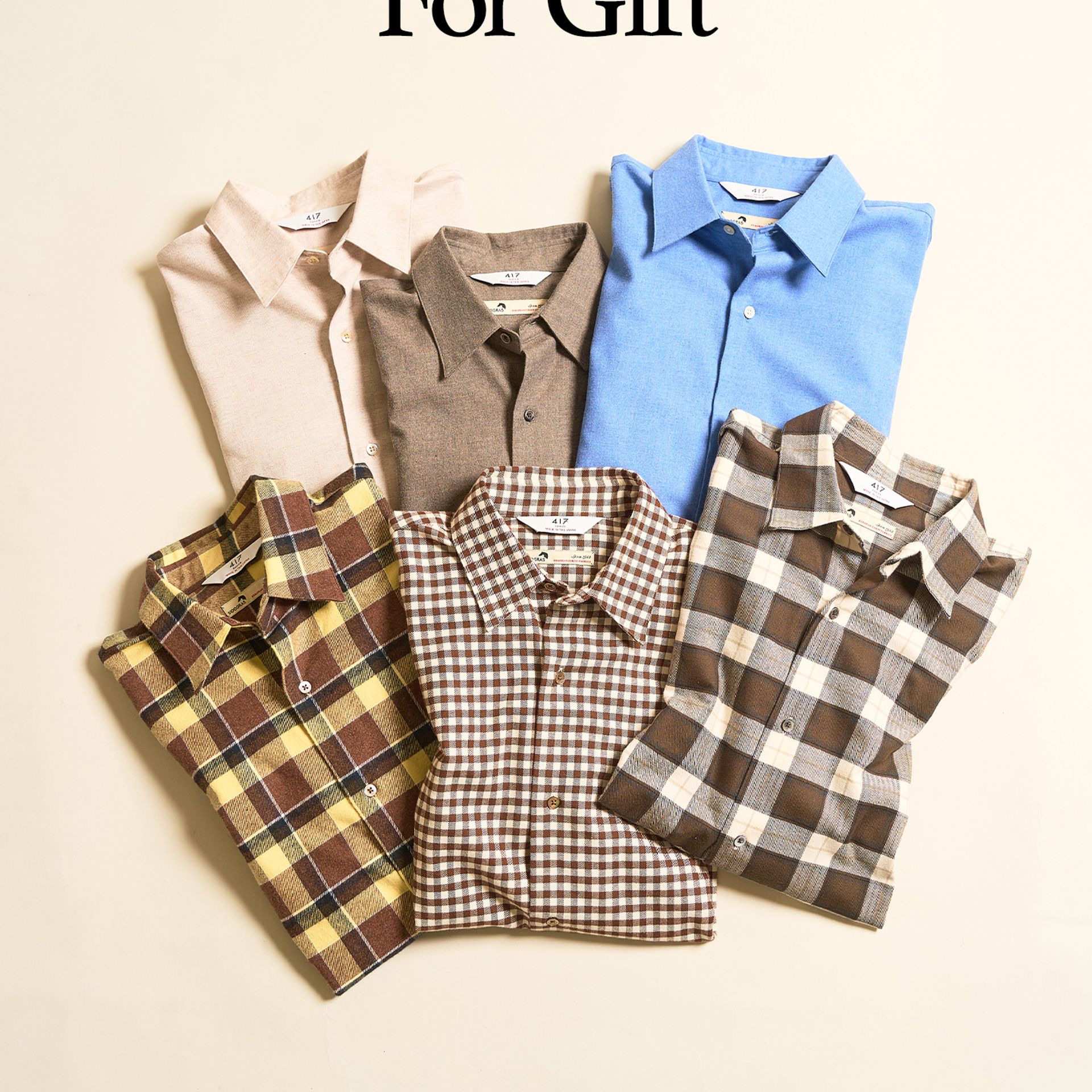 柔らかな色味と、どこか温かみのある生地感が魅力の417オリジナルシャツ。ニットの中に重ねたり、羽織として使ったりと、冬のスタイルを軽やかにしてくれる一枚です。ゆるめのサイズ感なら、ふたりでシェアしたり貸し借りしたりも自然に楽しめて、“毎日使えるギフト”としてもぴったり。色違いで揃えても可愛い冬の万能シャツです。