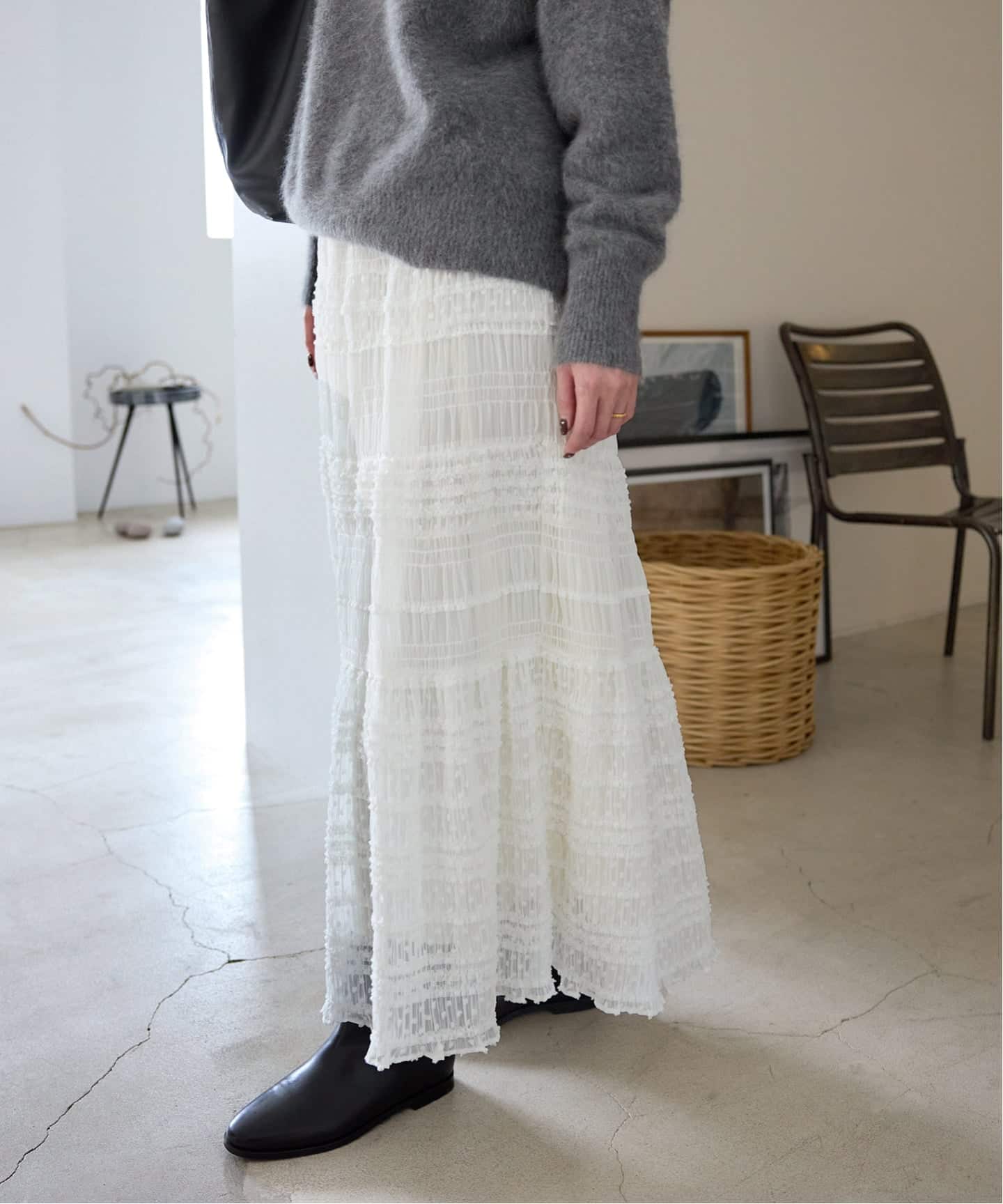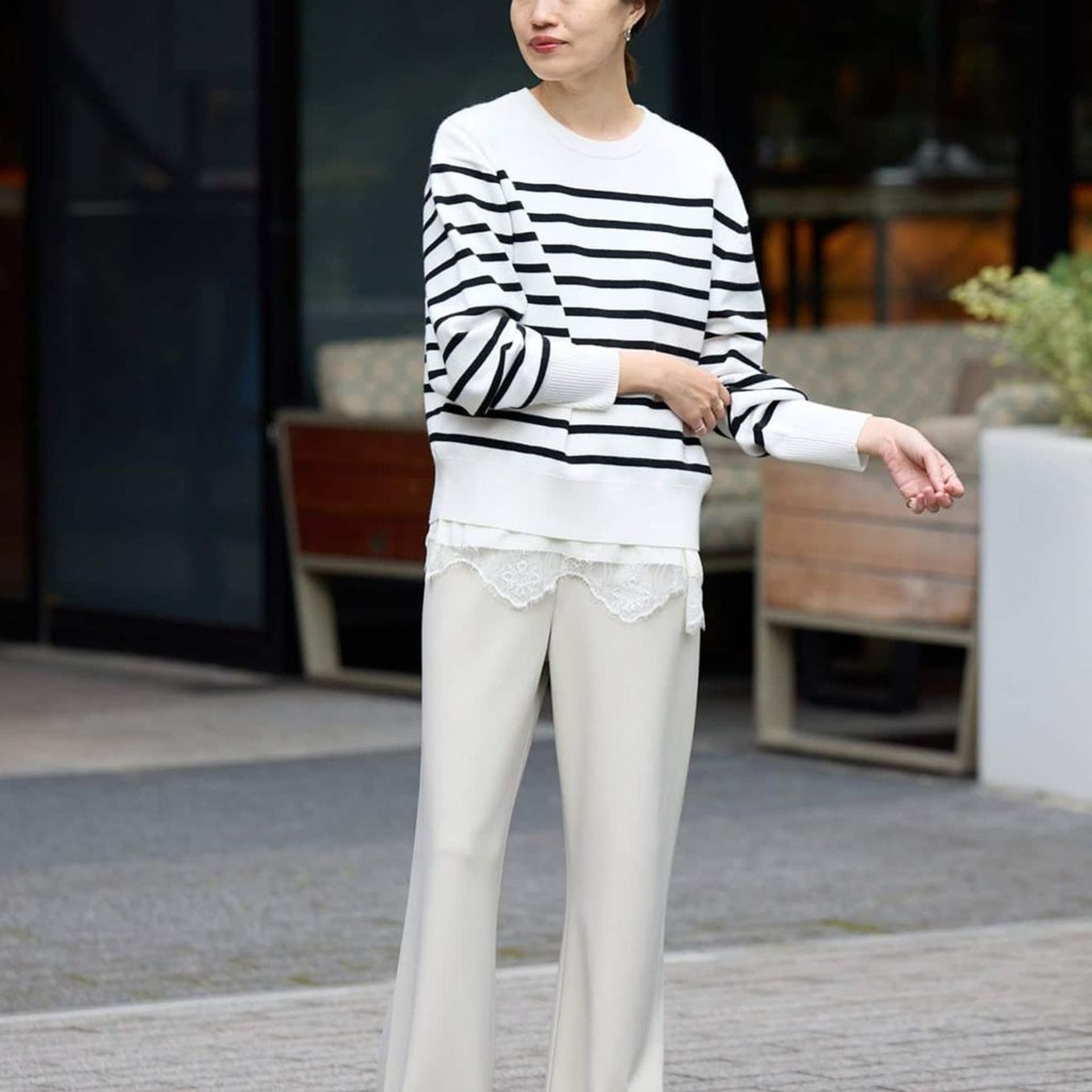 ジャケットやニットに裾からレースが見える着こなしがおすすめです。